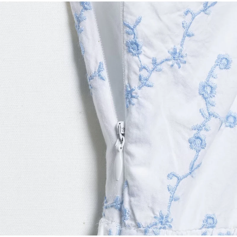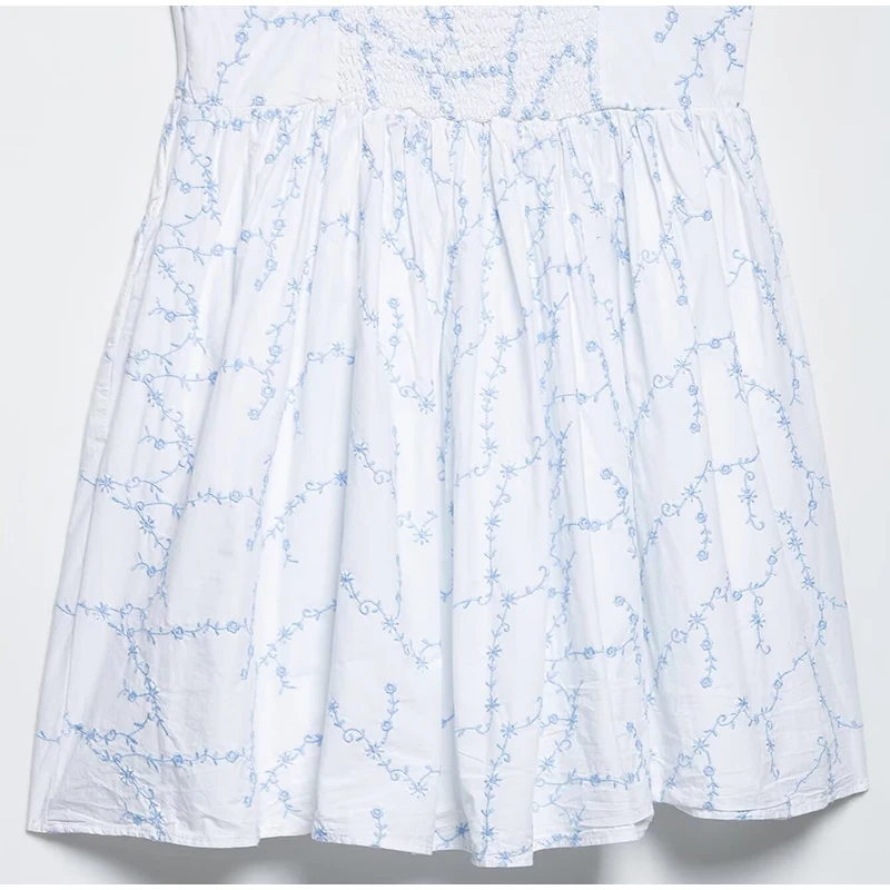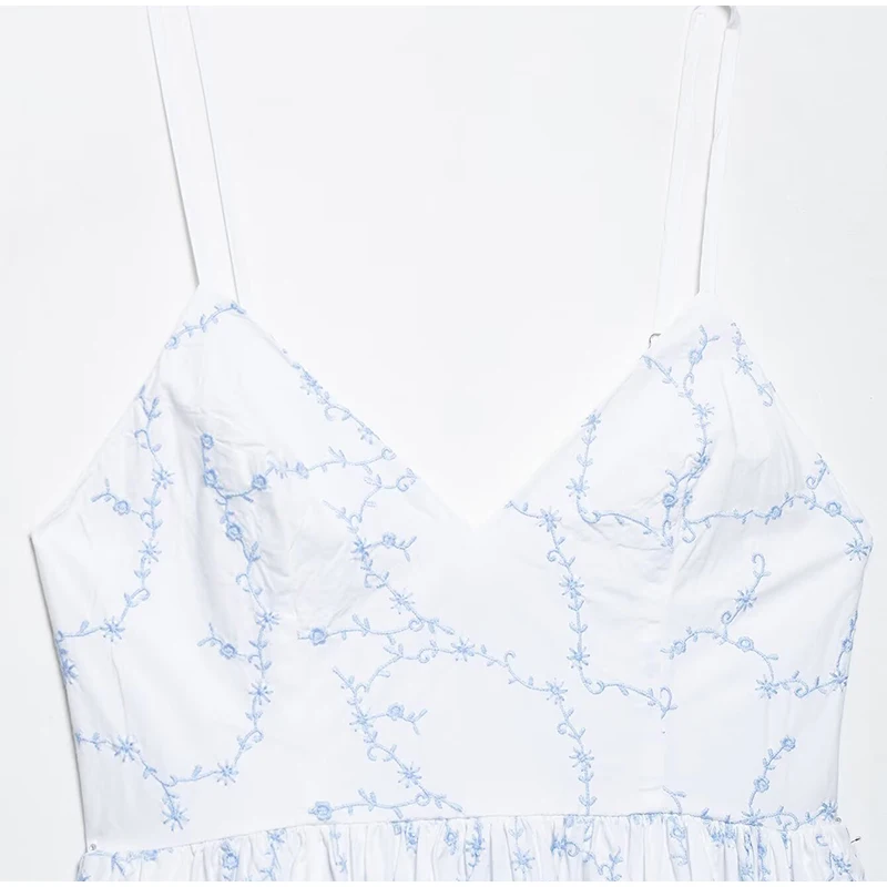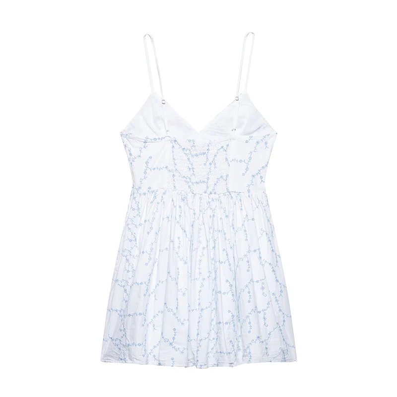 Hnewly Sexy Embroidery Short Sling Dress Women V-neck Sleeveless Backless Female A-line Dresses Summer Lady Chic Vacation Robes