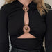 Hnewly Sexy Hollow Out Long Sleeve Bodysuit Metal Ring Connection Fashion Folds Women Bodice Black Bodycon Party Clubwear Top