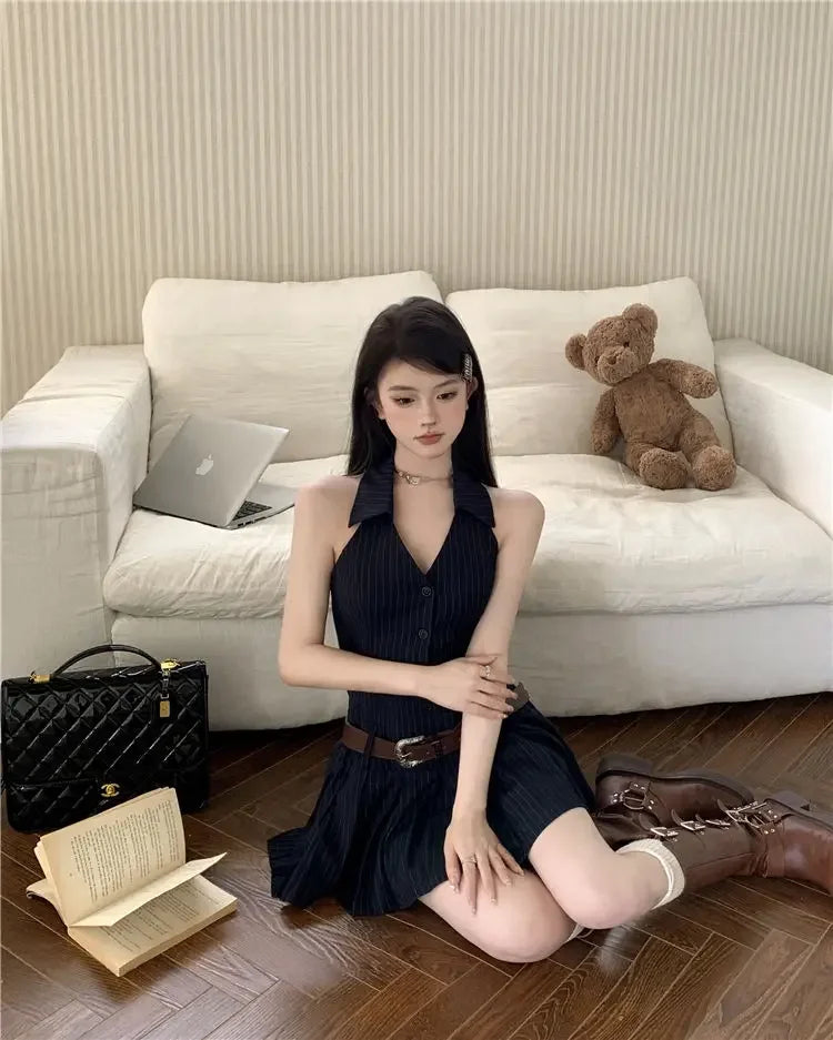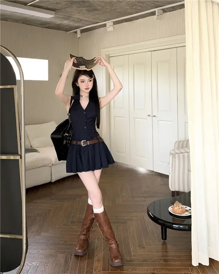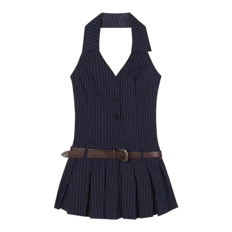 Hnewly Sexy Korean Style Striped Mini Dresses Women Y2k Backless One Piece Short Dress Hotsweet Streetwear Sleeveless Dress
