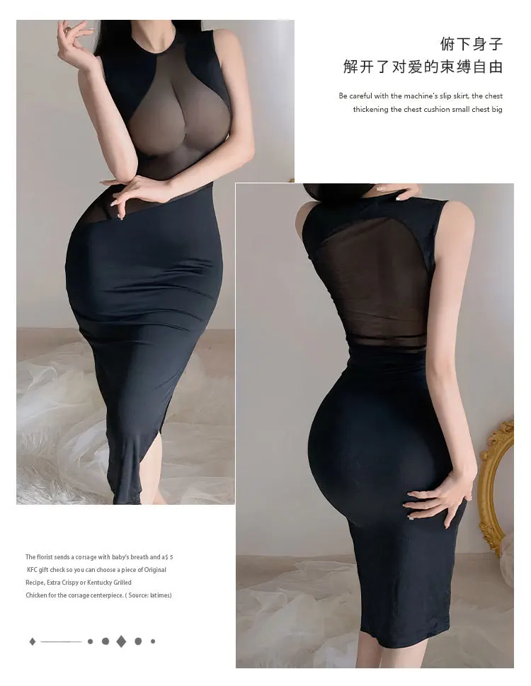 Hnewly Sexy Lingerie Black Thin Sheath Wrap Hip Long Bold Dress Nightclub Erotic Passion Sheer Charm Sleeveless Design Fashion X45Q