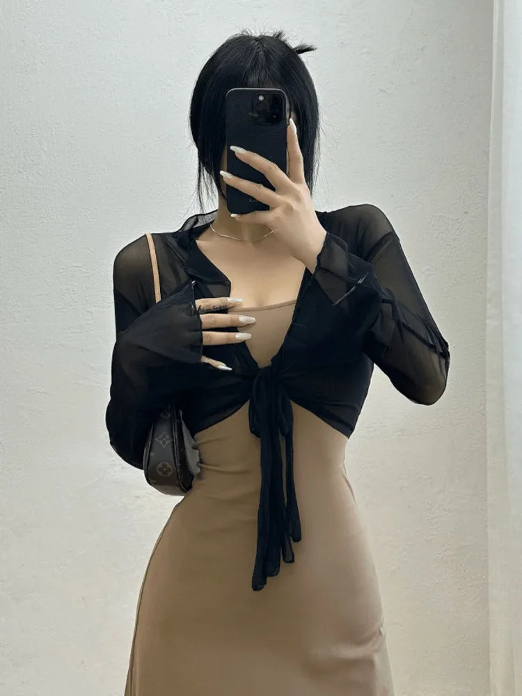 Hnewly Sexy Mesh Sunscreen Cardigan Summer Thin button Up designer korean shirt women Short Long Sleeve fashion tops P7DE