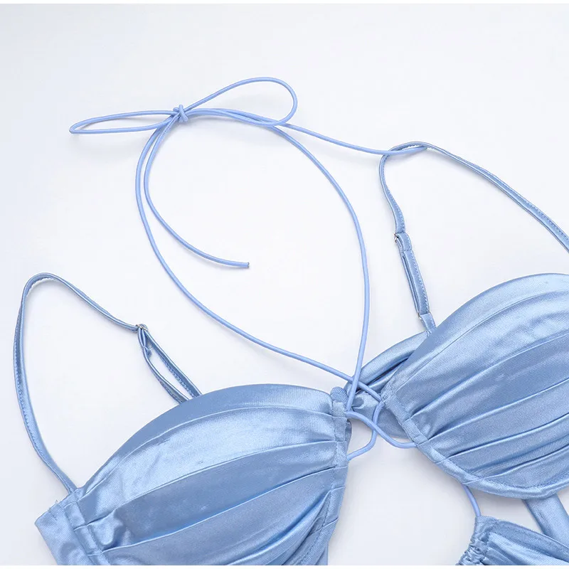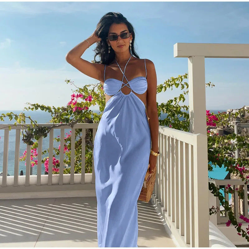 Hnewly Sexy Satin Bikini Top Long Dress Women Hollow Out Halter Sleeveless Backless Beach Dresses Summer Lady Party Holiday Robes