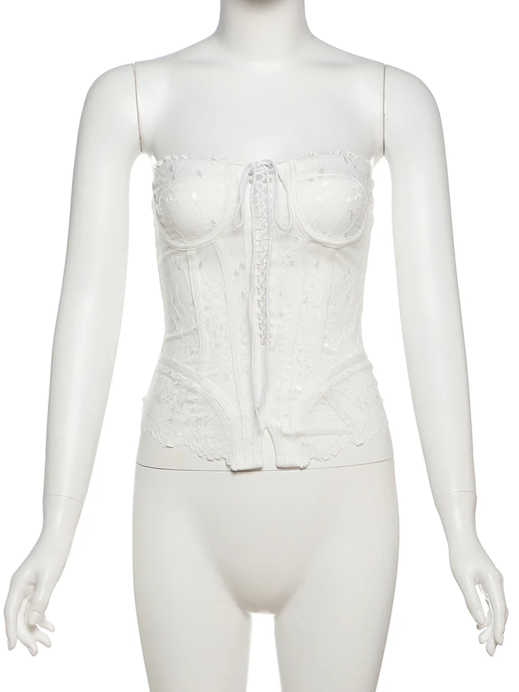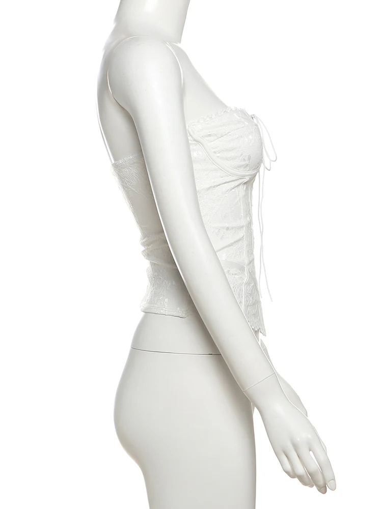 Hnewly Shirring Corset Tops Women Patchwork irregular Lace Sleeveless Backless Skinny Summer Trend Y2K Midnight Street Vest