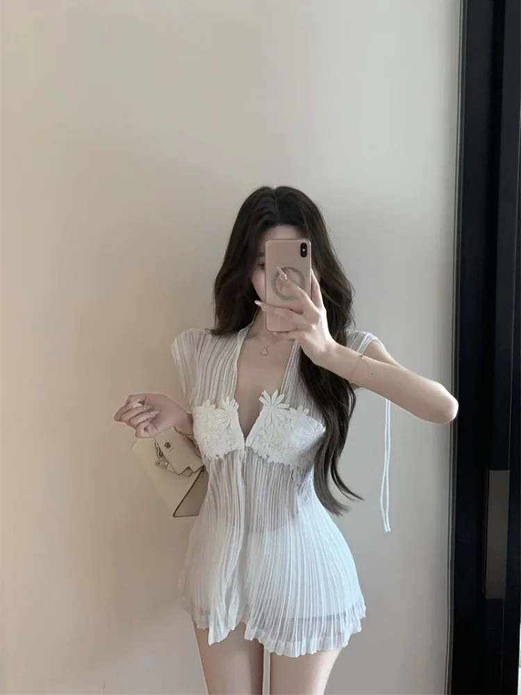 Hnewly Shirts Women Flowers Sleeveless V Neck Loose See Through Summer Fashion Elegant Blouse Female Casual Tops Sexy Chic