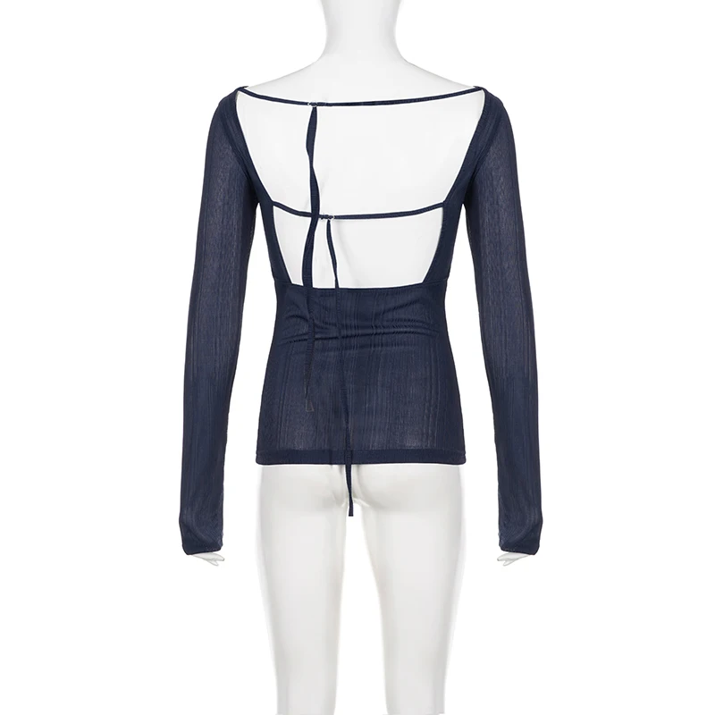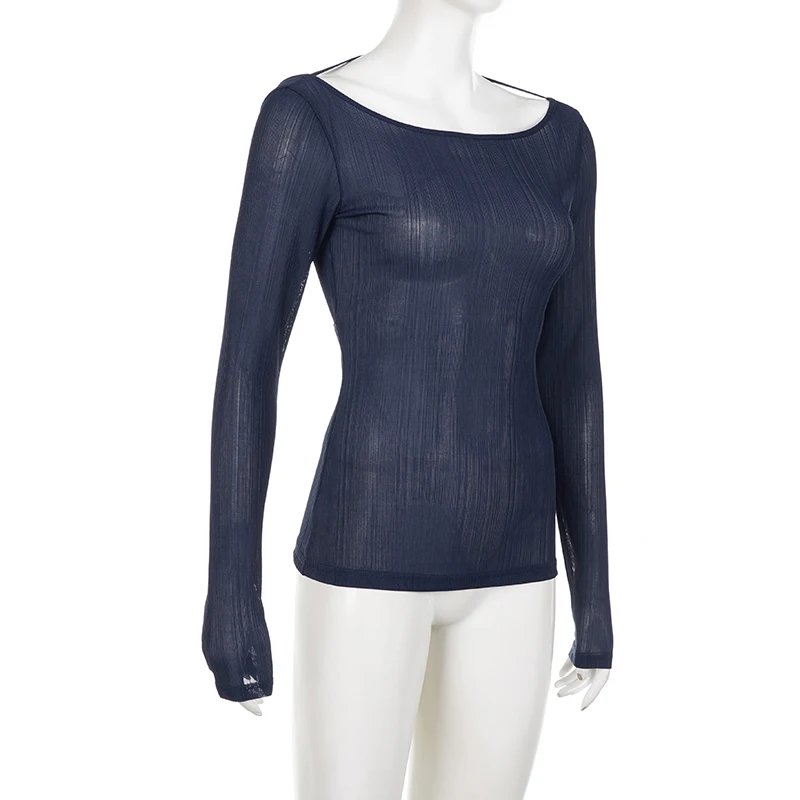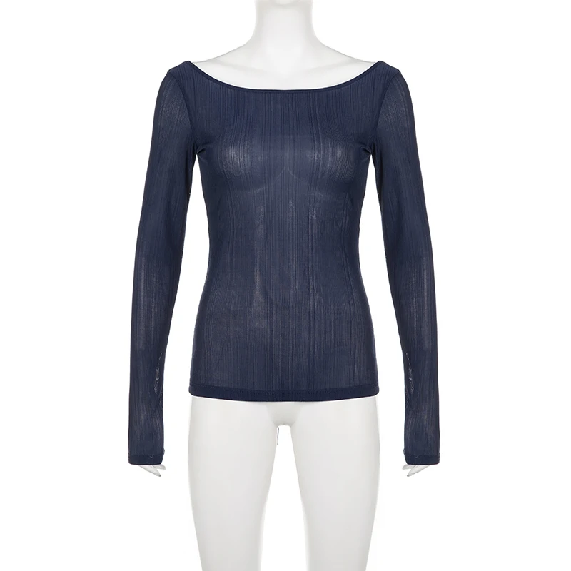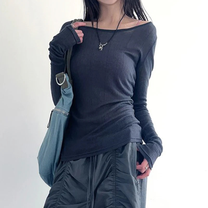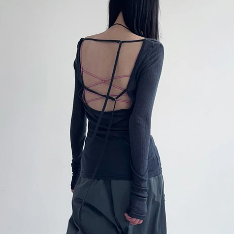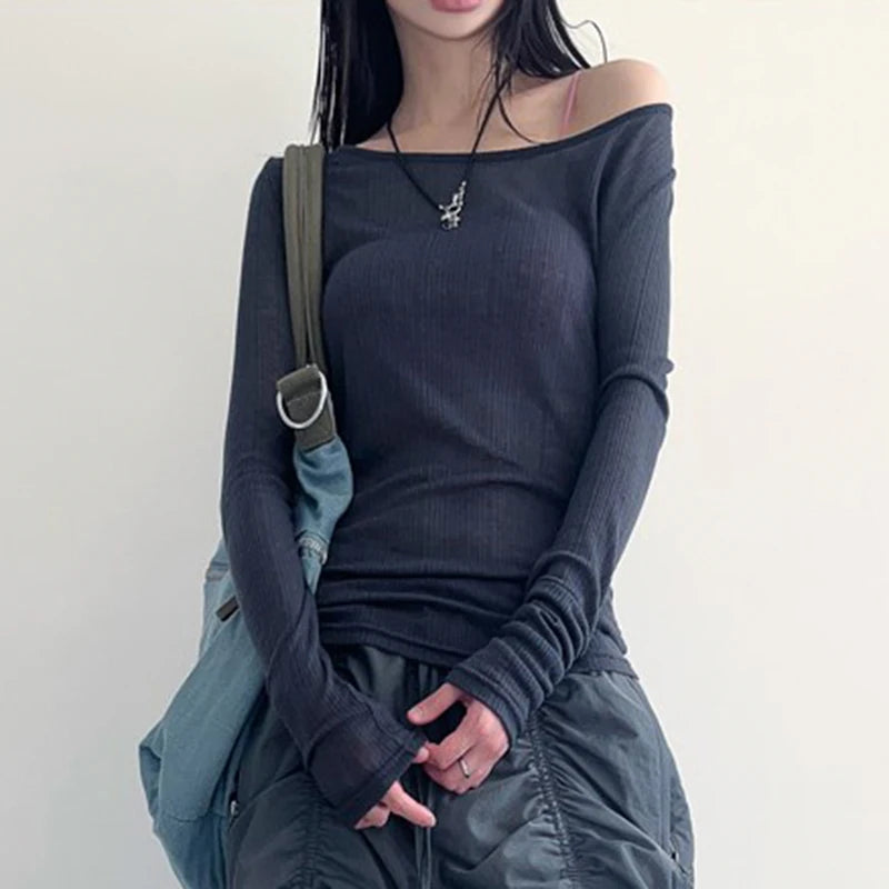 Hnewly Slim-fitting Off-shoulder Crop Top Women Casual Full Sleeve Backless T Shirts y2k Aesthetic Ladies Autumn Tees Smock Sexy