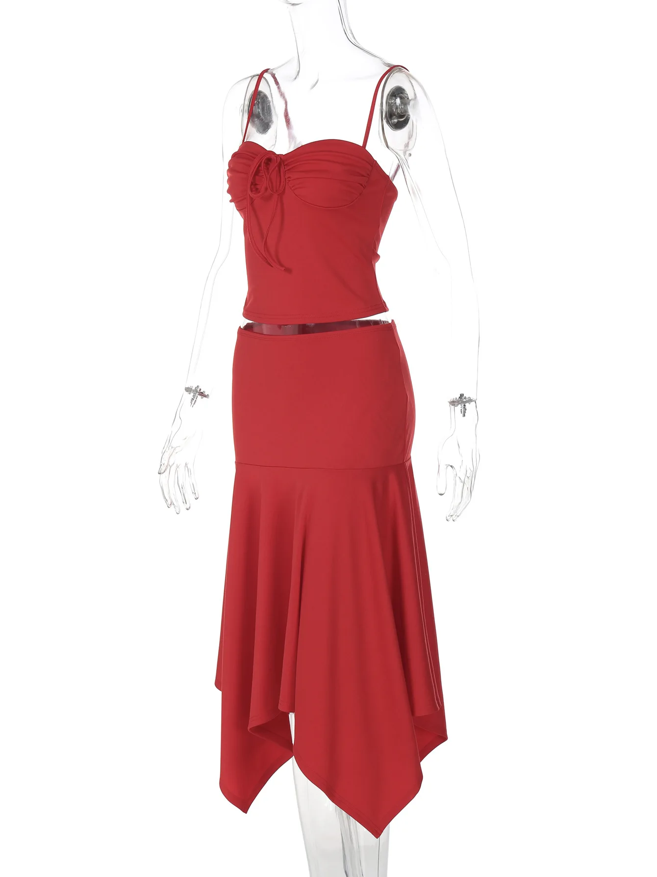 Hnewly Sling Skirt Suit Women's Sleeveless Solid Slim T shirt Top Irregular Long Skirt High Waist Casual Summer Fashion Set