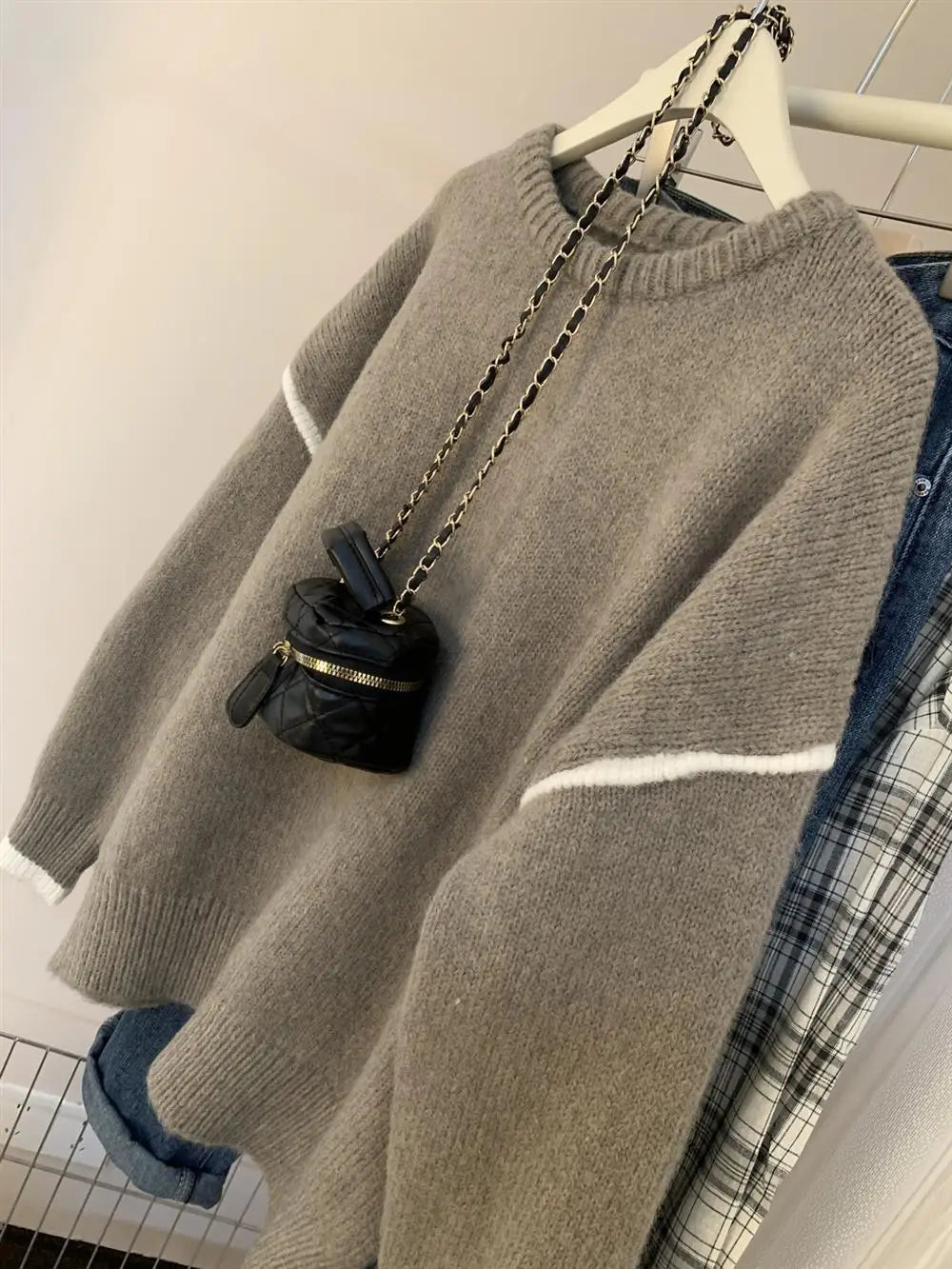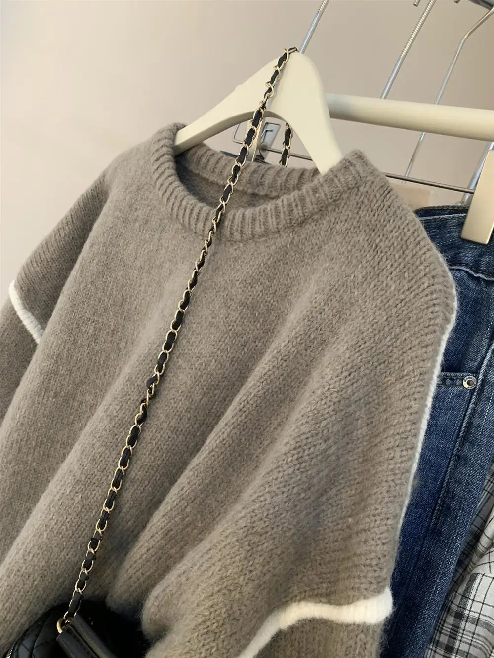 Hnewly Soft Color Block Sweater Women Autumn Winter Loose Lazy Style Knit Pullover Female Casual Long Sleeved O-neck Versatile Top