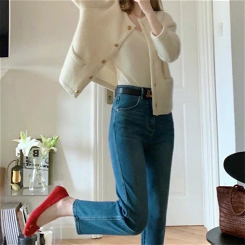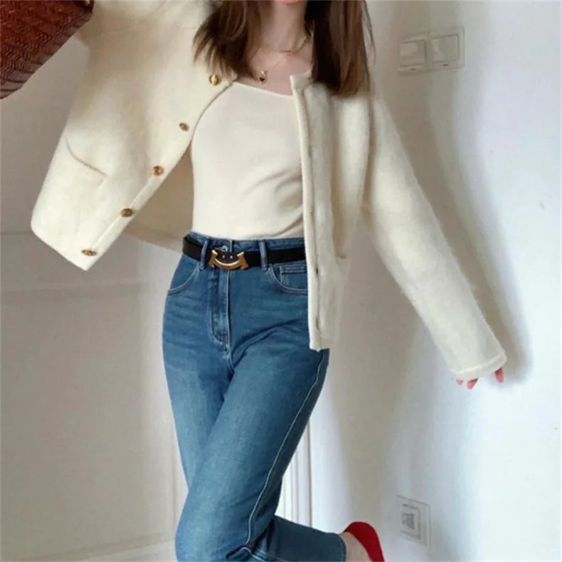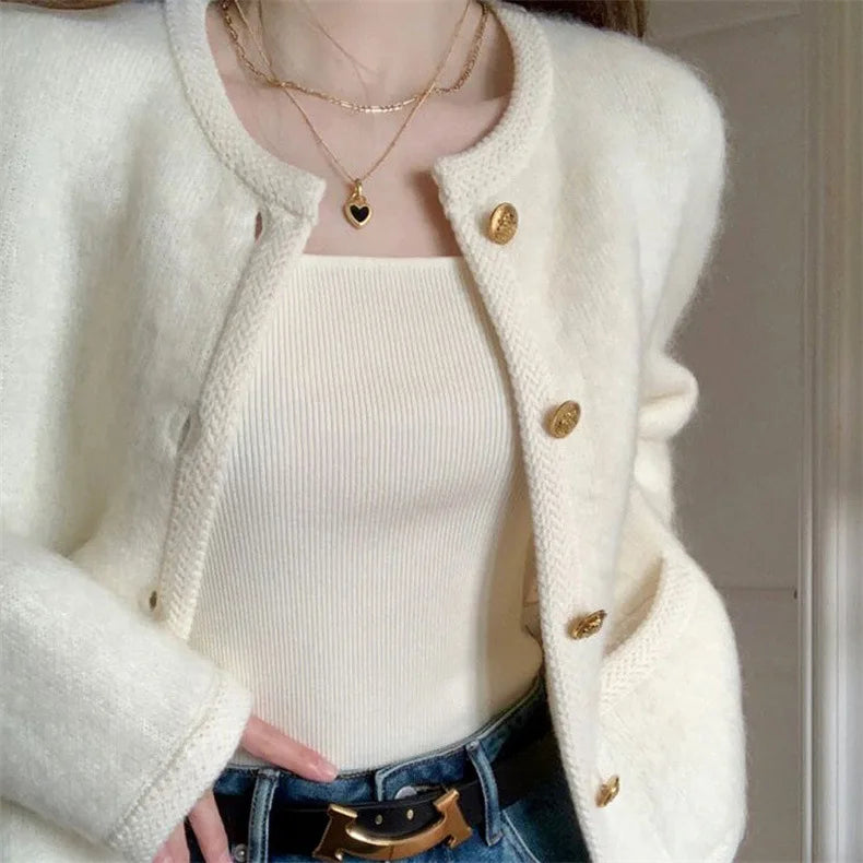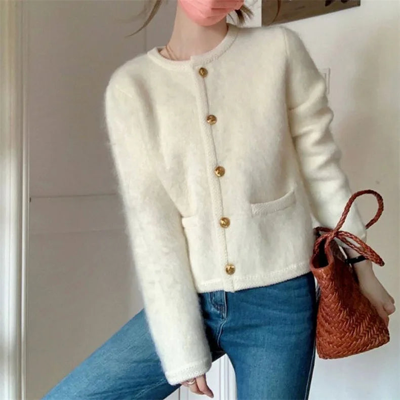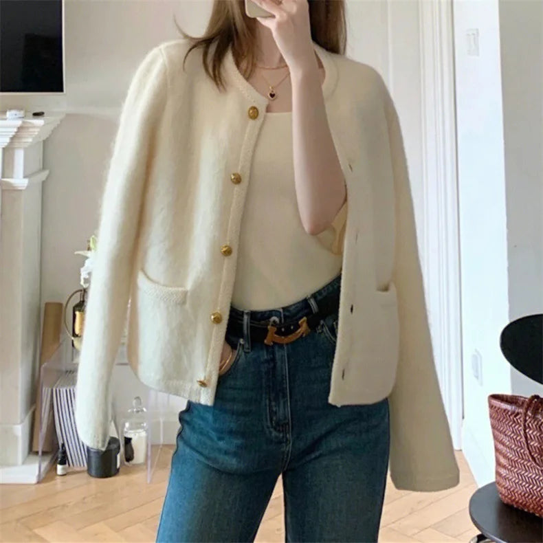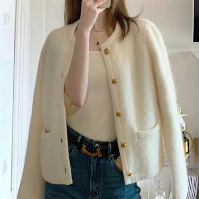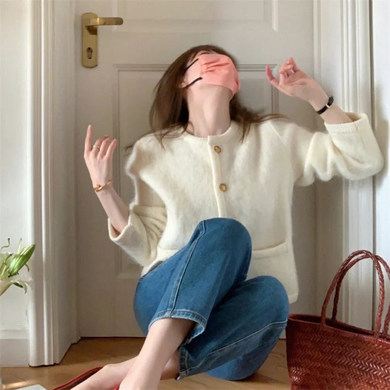 Hnewly Soft White Sweater Elegant O-Neck Single Breasted Versatile Coat New Women's Autumn/Winter Comfortable Knitted Cardigan