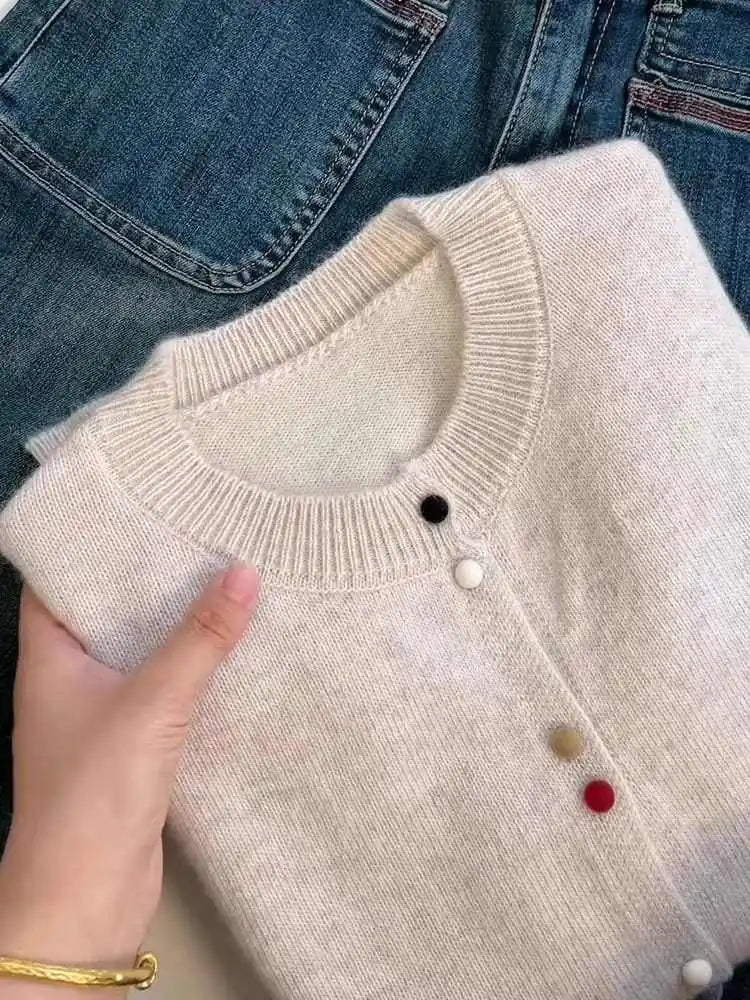 Hnewly Solid Single Breasted Sweater Women New Autumn Winter O-neck Loose Basic Top Elegant Long Sleeved Knitted Cardigan Jacket
