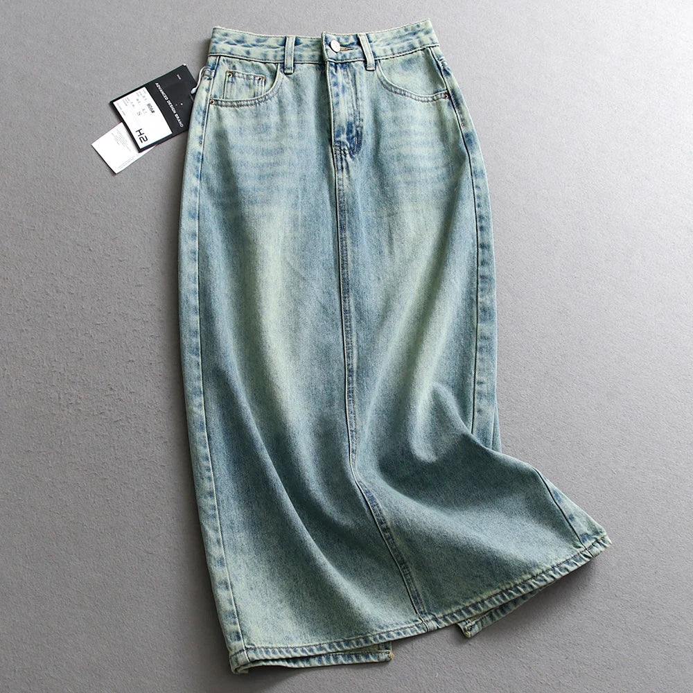Hnewly Splitted High Waisted Denim Skirt Women's Versatile Mid Length Jeans Skirt Autumn Light Color Fashion Double Pocket Skirts