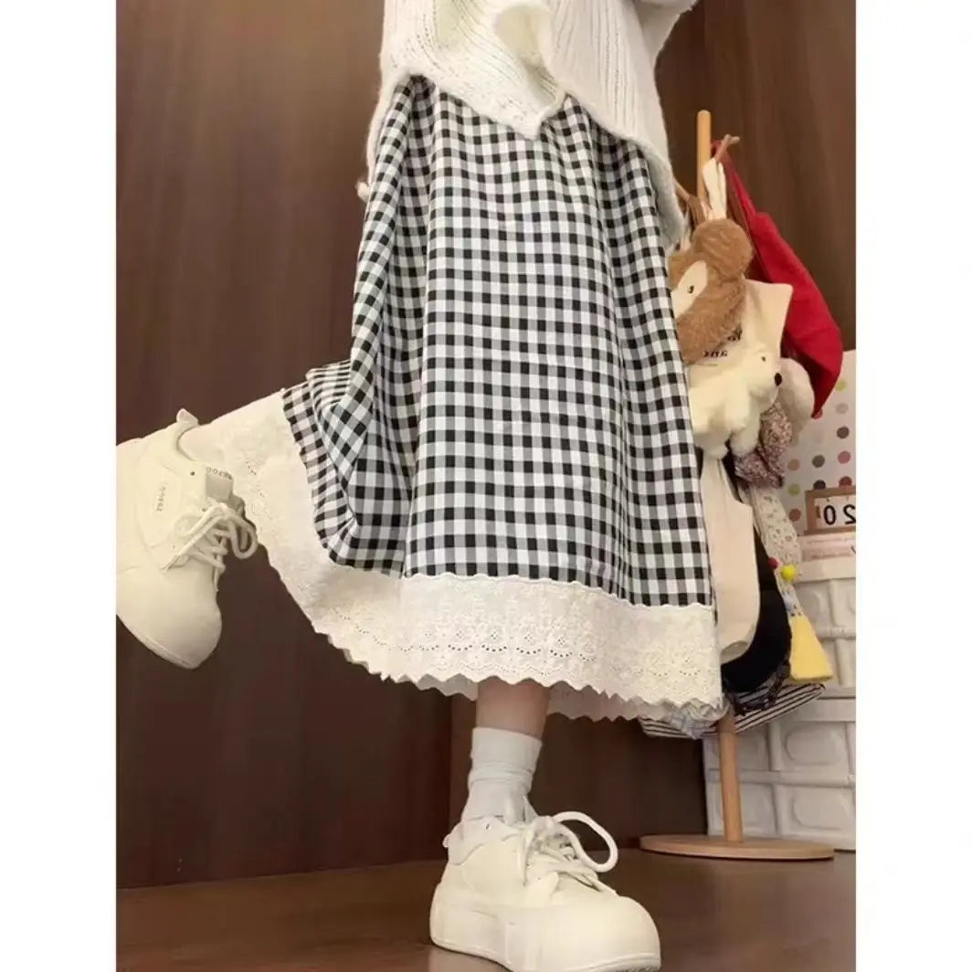 Hnewly Spring Autumn New High Waist Slim A-line Long Skirt Fairy Umbrella Skirt