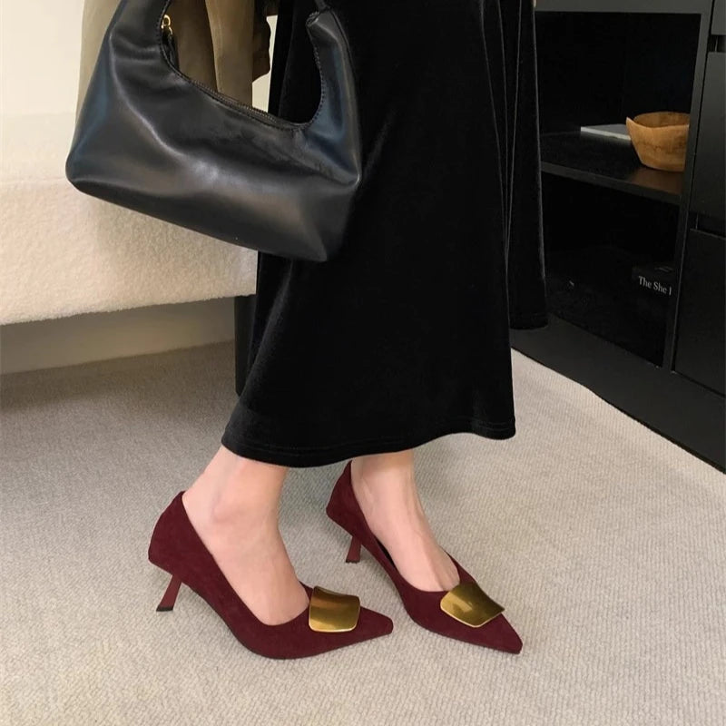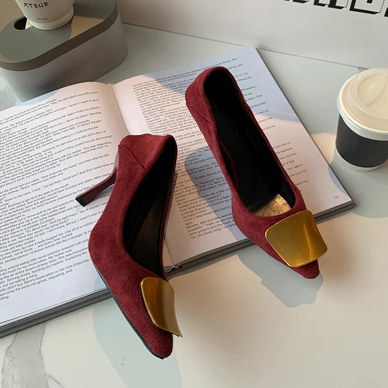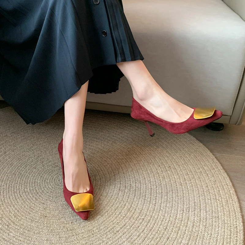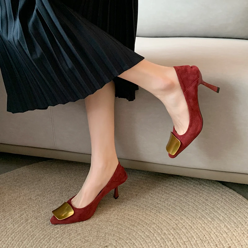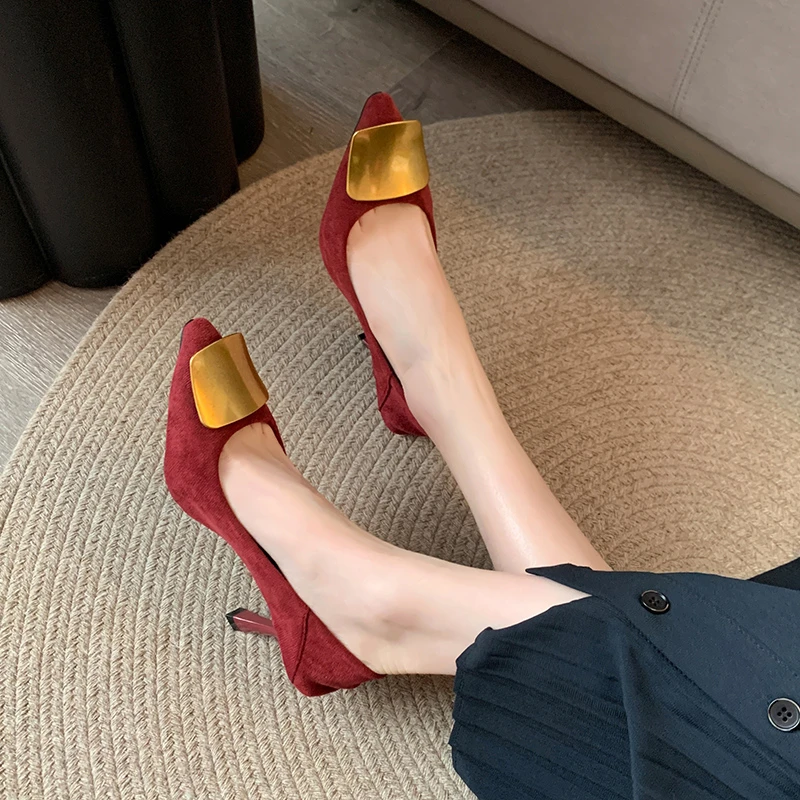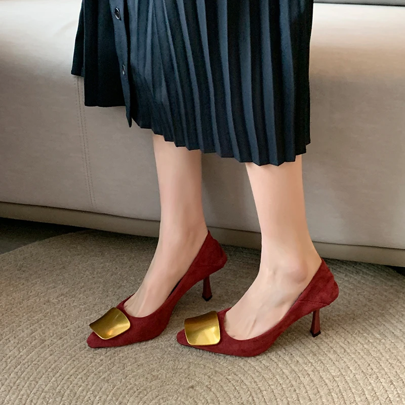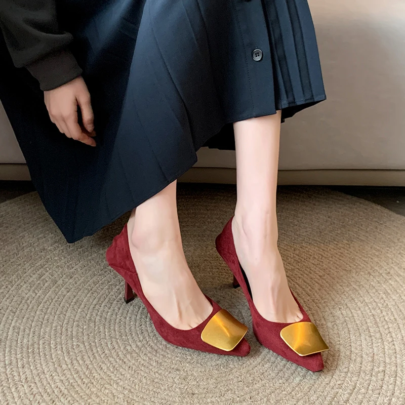 Hnewly Spring Metal Decoration Women high heels Pumps Shoes Ladies Leopard Print Slip On Leather Eelgant Pointed Toe Party Dress Shoes