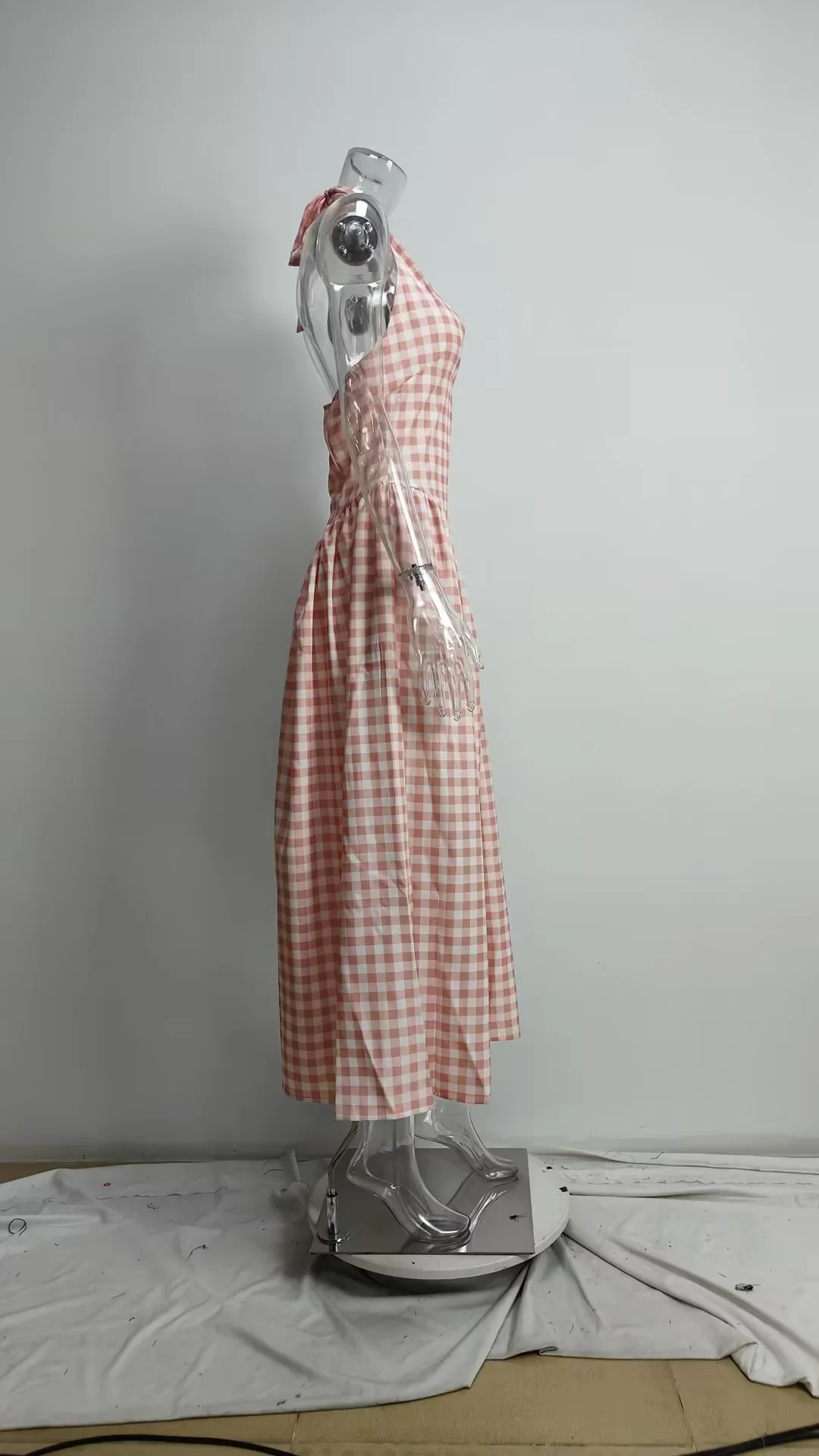 Hnewly Spring Women's Elegant Waist Hanging Neck V-neck Crimson Waist Dress
