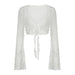 Hnewly Streetwear y2k Lace Smock T-shirt Solid White Flared Full Sleeve Bandage Cardigan Crop Top Women Vintage 2000s Tees Shirt