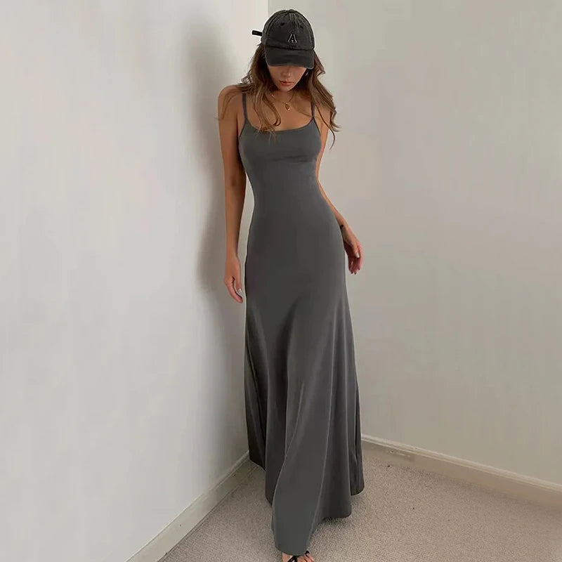 Hnewly Summer Autumn Bodycon Women Dress Sexy Spaghetti Strap Sleeveless Solid Floor Length Dress Fashion Elegant Party Night Vestidos