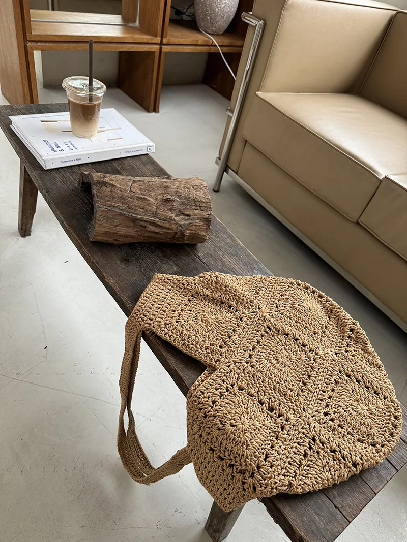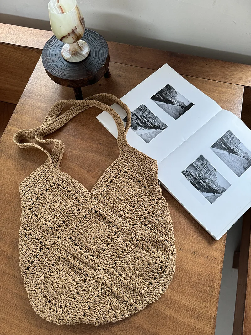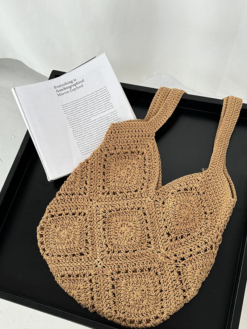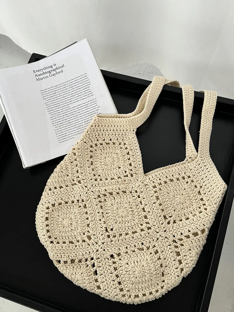Hnewly Summer Beach Straw Handbag Eco Friendly Handmade Woven Cotton Crochet Tote Bags Purse Vacation Shoulder Bag