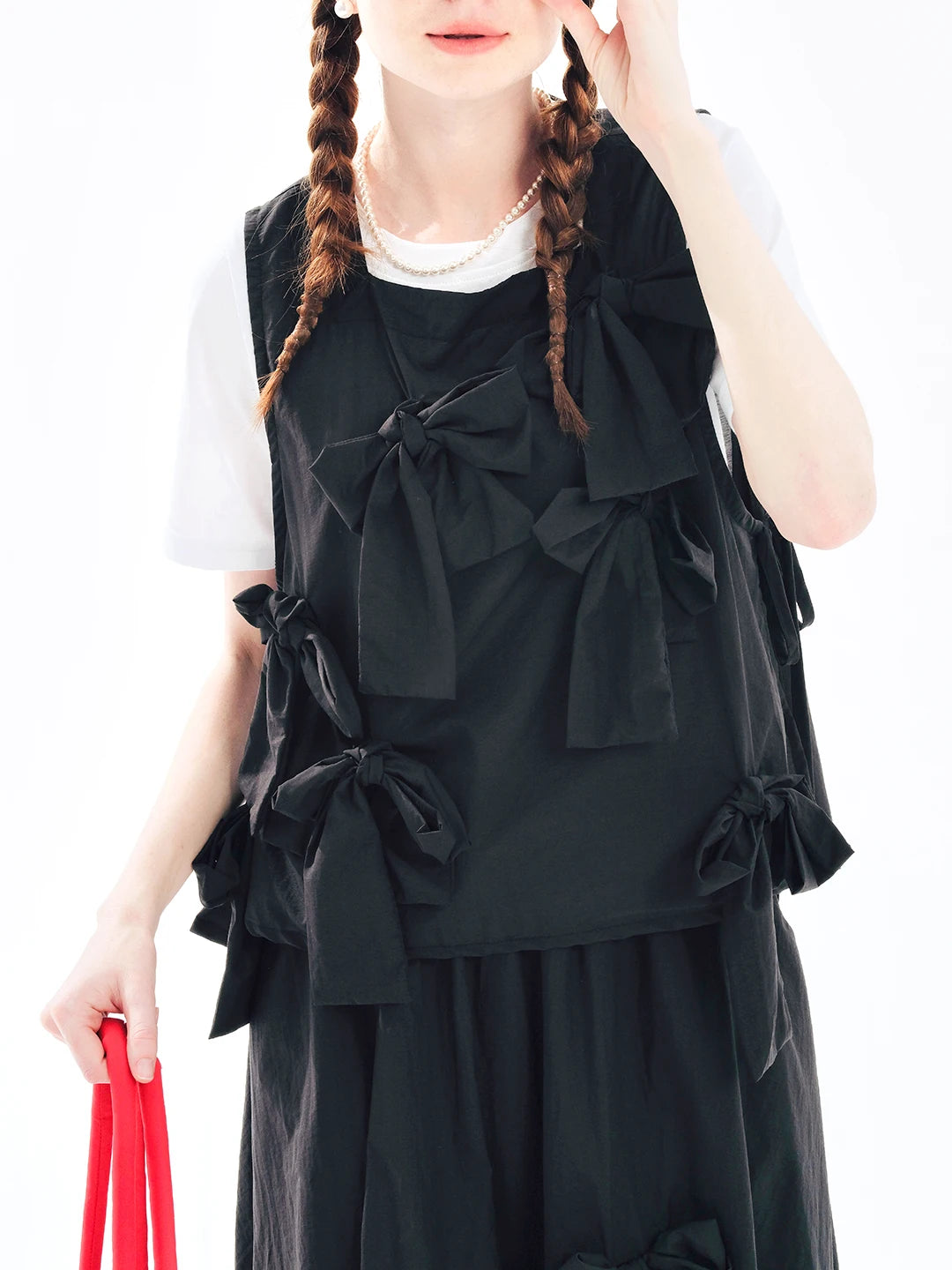 Hnewly Summer New Artistic Black Bow Hoodie Square Neck Tank Top for Women 244691