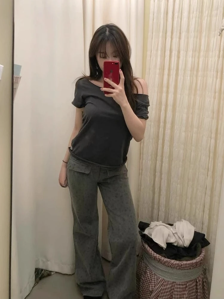 Hnewly Summer New Top for Women Sexy Skew Collar Off Shoulder Tee Shirt Y2k Fashion Wings Printed Short Sleeved T-shirts