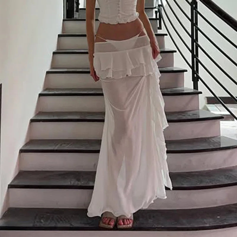 Hnewly Summer Perspective Sexy Lotus Leaf Edge Splicing Long Dress