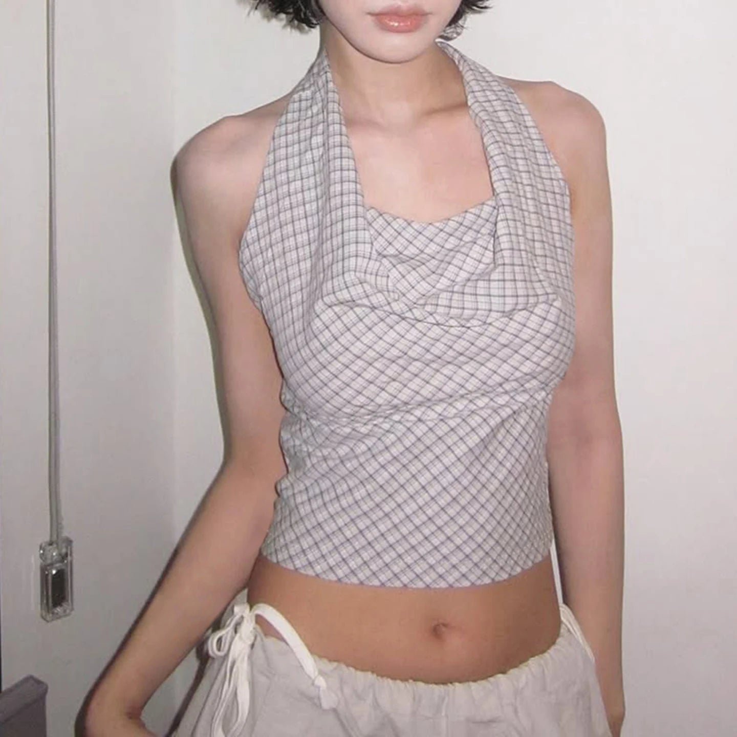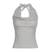 Hnewly Summer Retro Plaid Print Halter Tank Top y2k Aesthetic Sleeveless Lace-up Backless Cropped Tops Women Vintage 2000s Vest