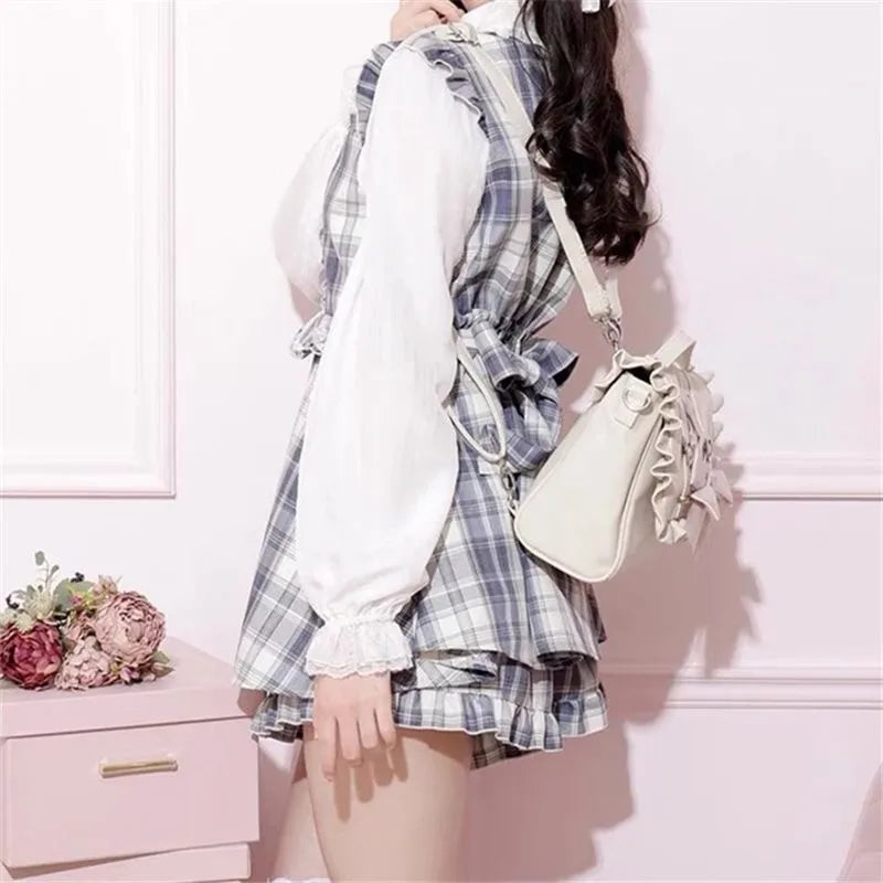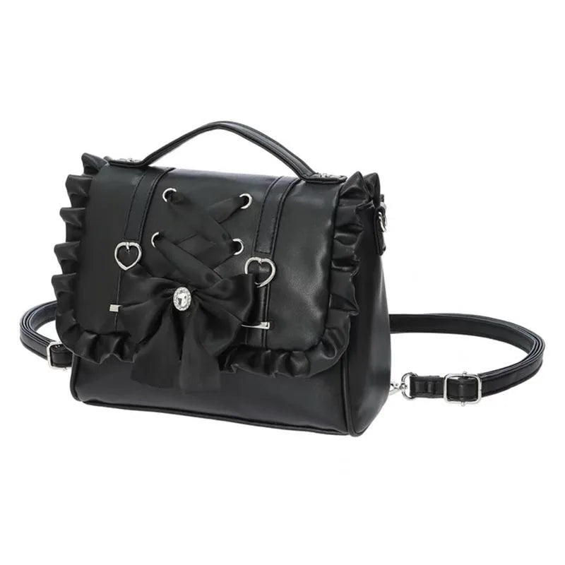 Hnewly Sweet Bow Pink Mochila Women Fairyocre Aesthetic Handle Leather Crossbody Bags Ladies Lolita Large Capacity Square Mochilas