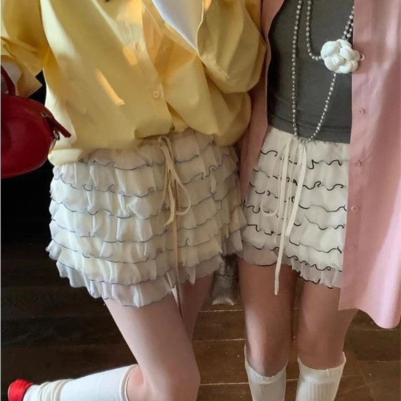 Hnewly Sweet Fairycore Cake Skirts Women Kawaii Korean Style Ruffle Mini Skirt Elegant Casual High Waist Mesh Layered Skirt
