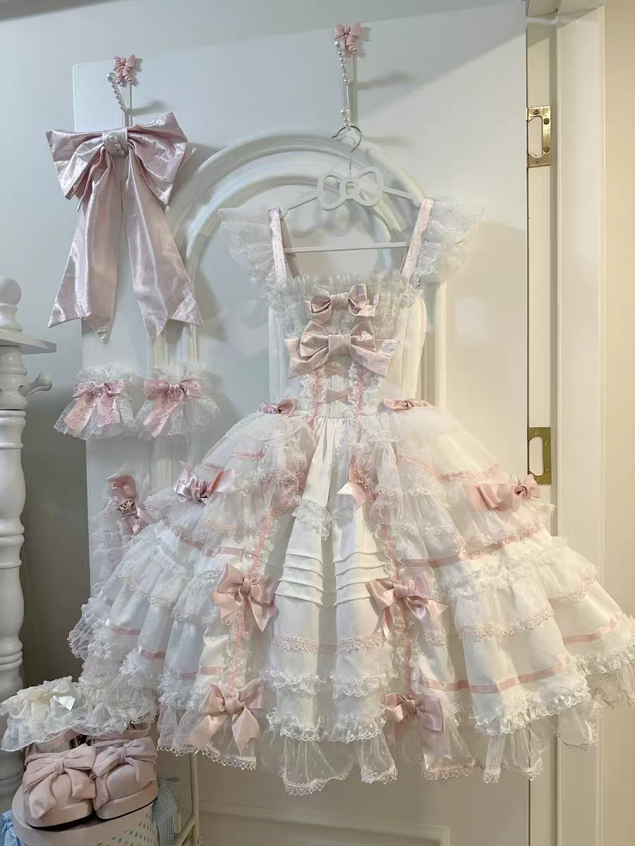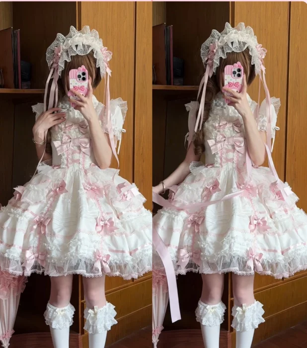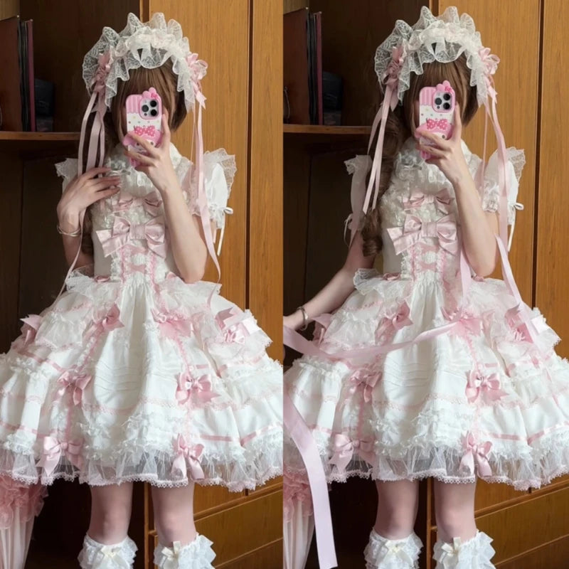 Hnewly Sweet Lolita Princess Dress for Women Spring and Autumn Girl's Cute Bow Lace Edge Tea Party Dress Lolita Birthday Dress