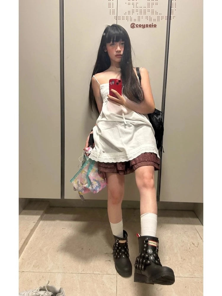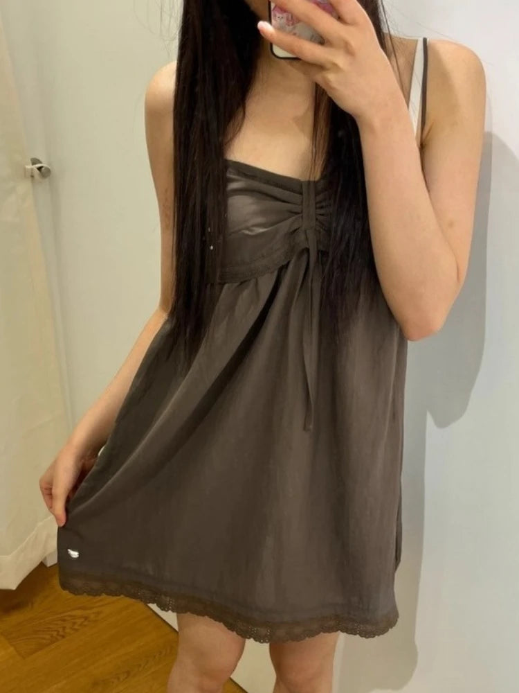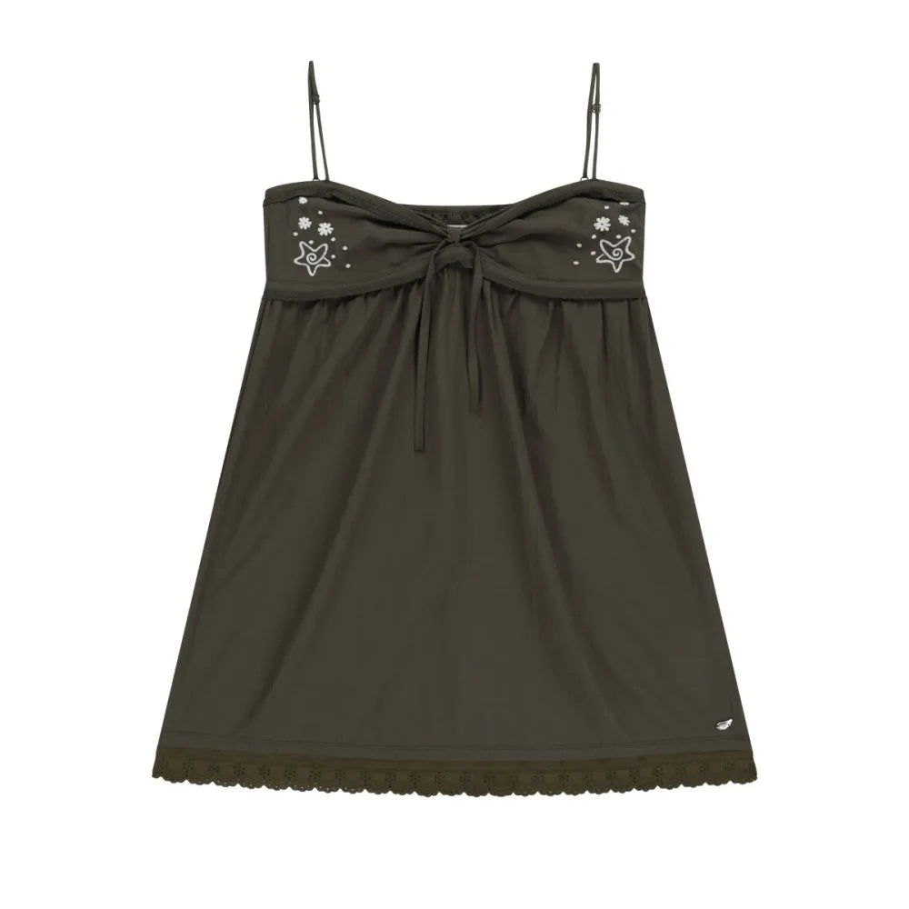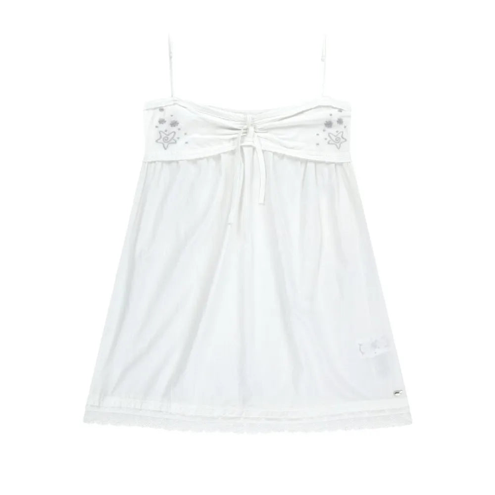 Hnewly Vacation Style Star Print Camisole Dresses Ruched Slimfit Lace Up Mesh Dress for Women New Sleeveless Vestidos De Mujer