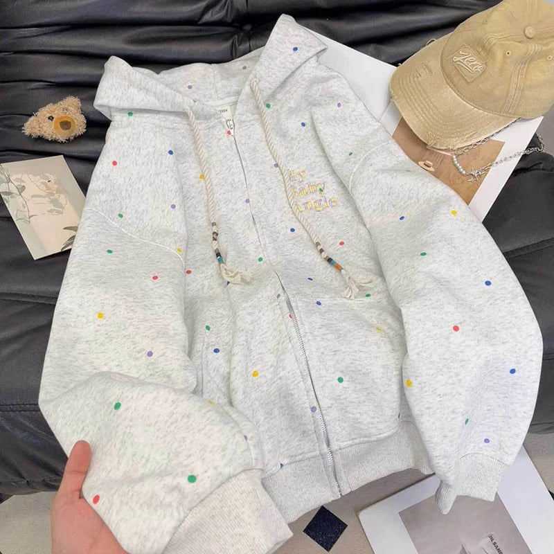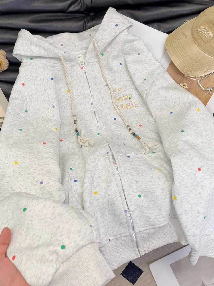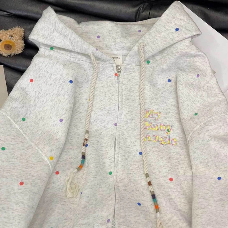 Hnewly Vintage Dot Sweet Hoodies Women Letter Embroidery Cute Loose Sweatshirts Casual Preppy Style Long Sleeve Lady Japan Tops