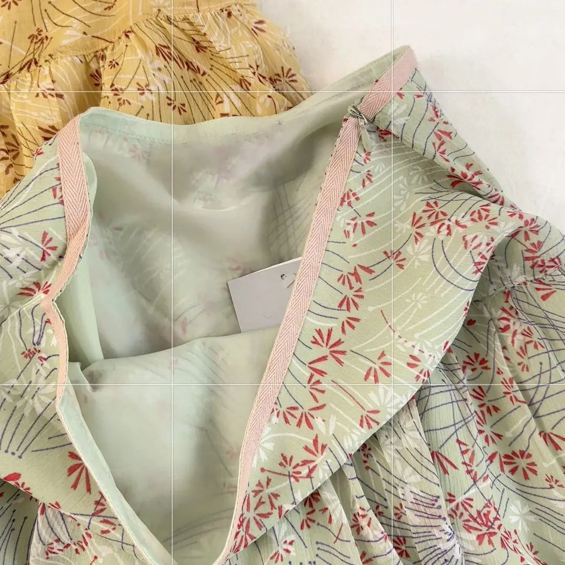 Hnewly Vintage Floral Chiffon Skirts Women Sweet Japanese Style Elegant High Waist Mini Skirts Short Skirts Harajuku Fashion