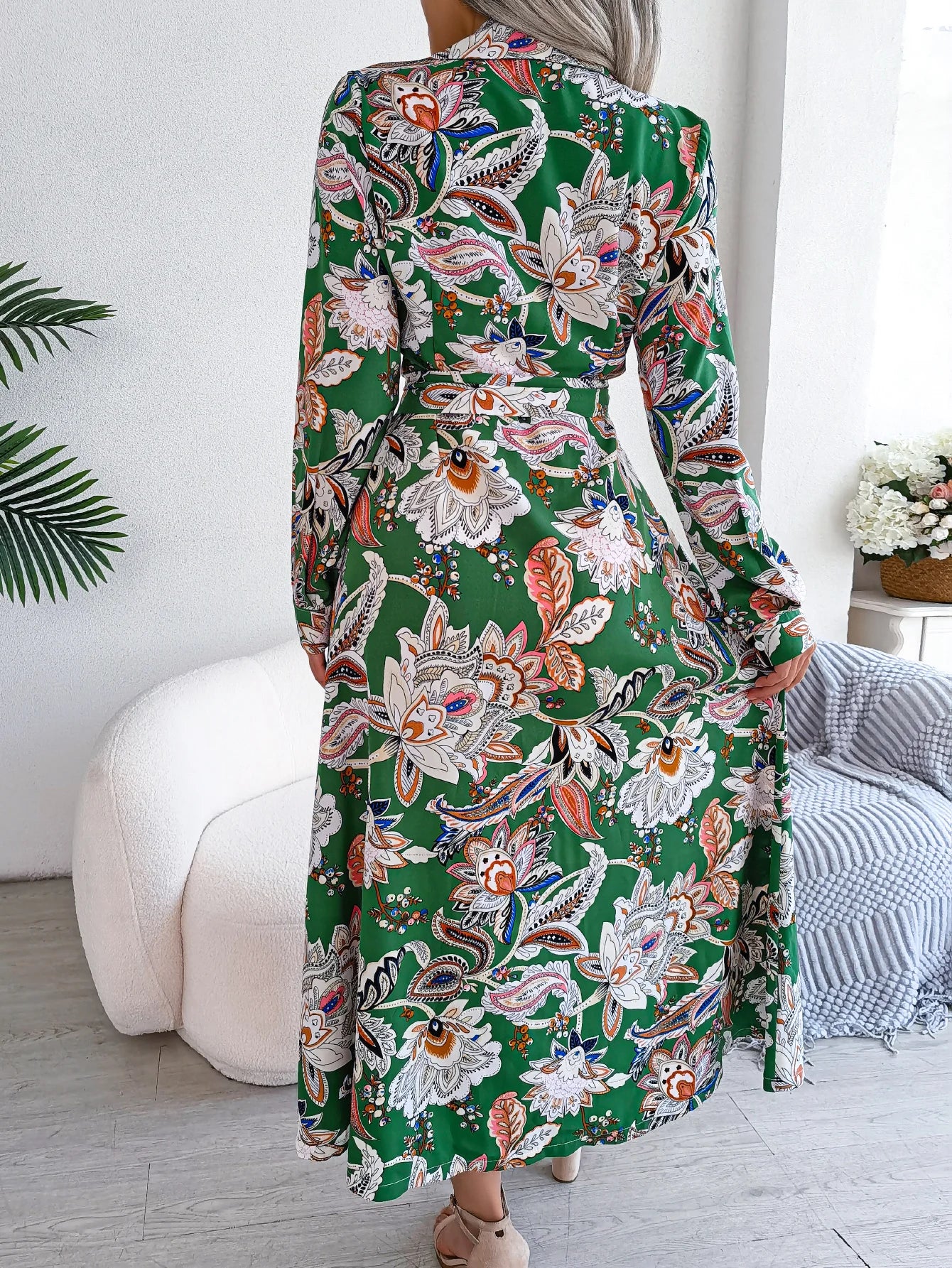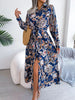 Hnewly Vintage Floral Print Button Up Long Sleeve Maxi Shirt Dress For Fall & Spring, Women's Clothing