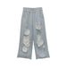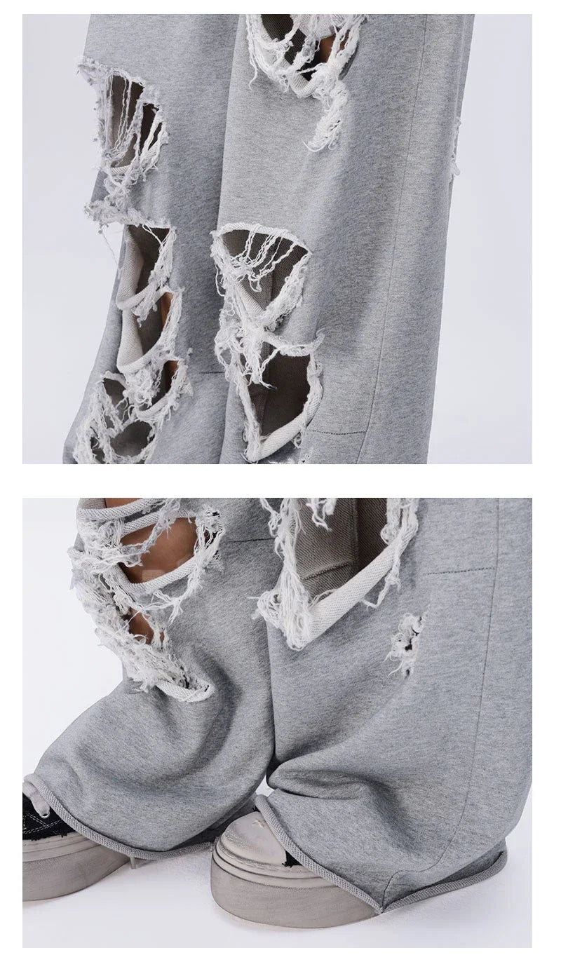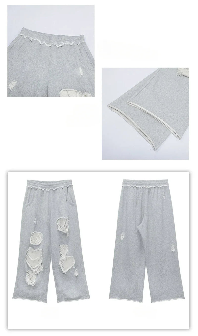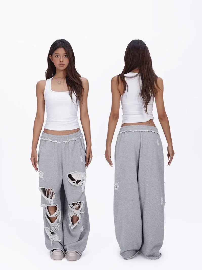 Hnewly Vintage Gray Distressed Joggers Women Baggy Hip Hop Style Grunge Wide Leg Sweatpants Oversized Street Fashion Trousers