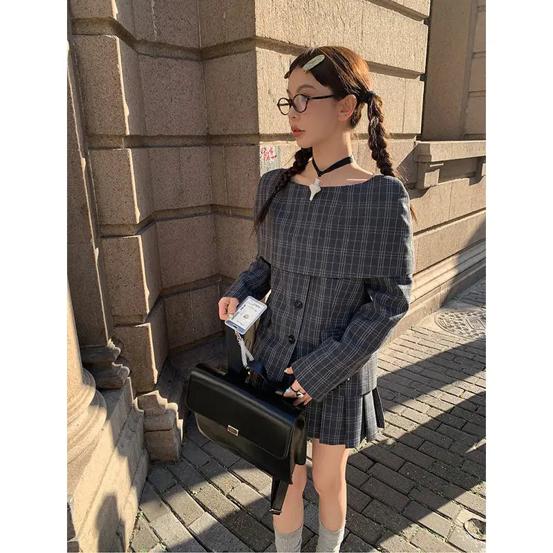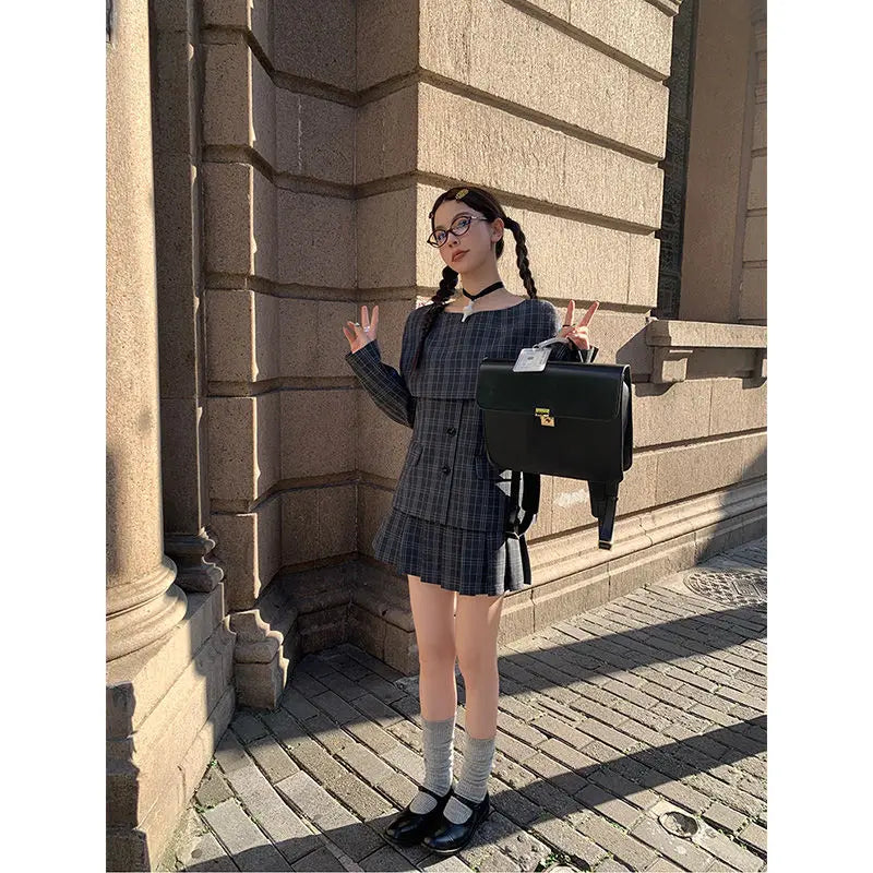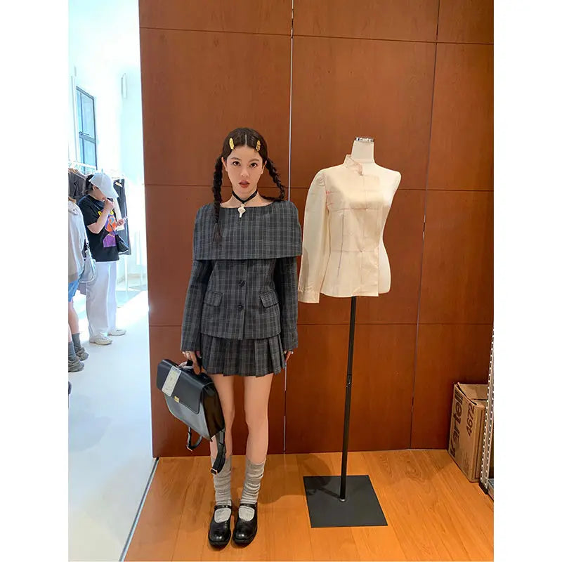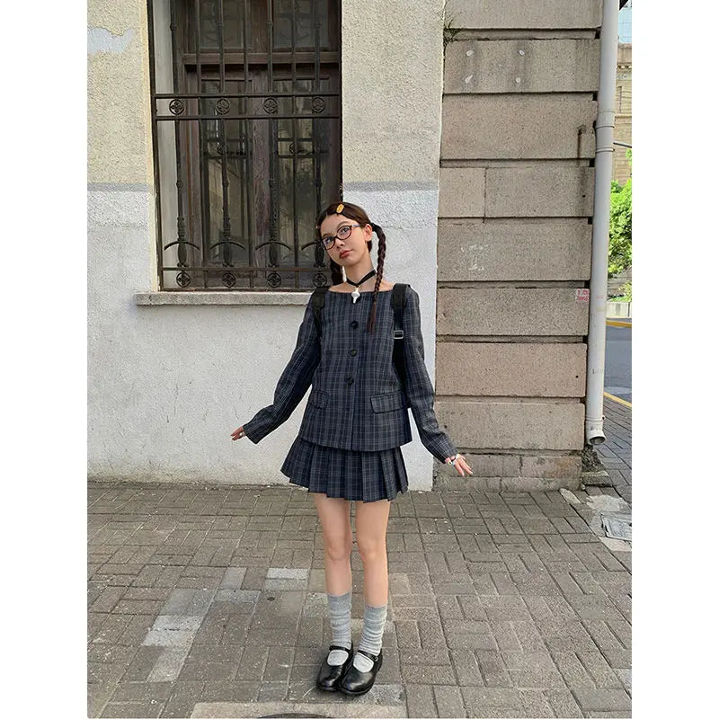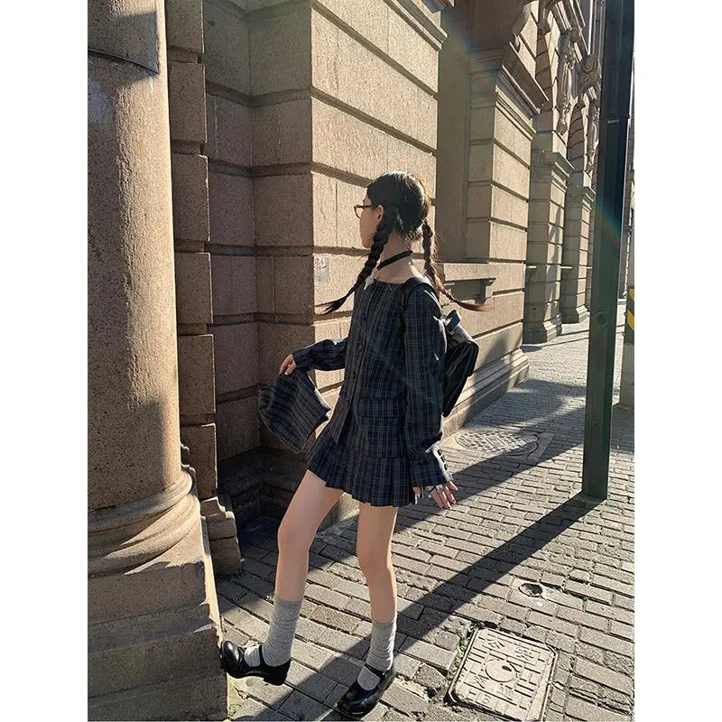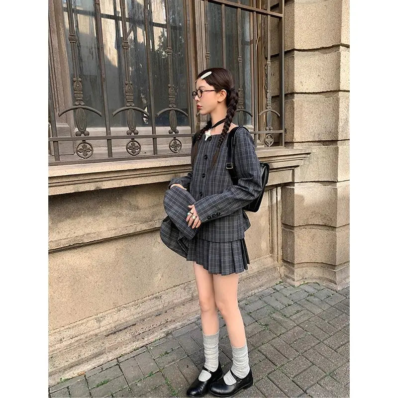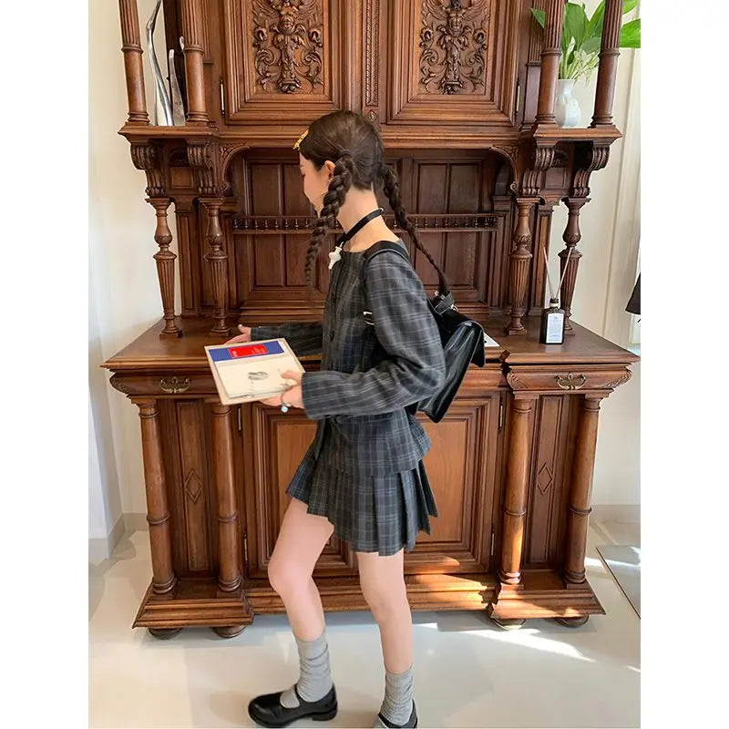 Hnewly Vintage Plaid Skirt Women Preppy Style Sweet Pleated Mini Skirt Korean Fashion Retro Japanese Harajuku Short Skirts