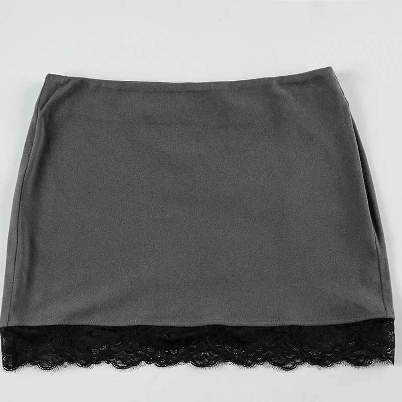 Hnewly Vintage y2k Lace Stitching Mini Skirts Summer Streetwear Low Rise Skinny Pencil Skirts for Women Casual Harajuku Clothing