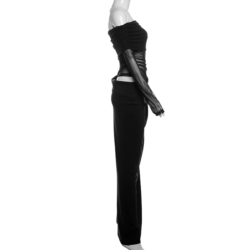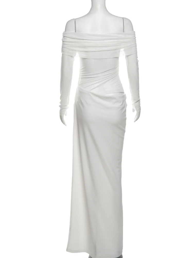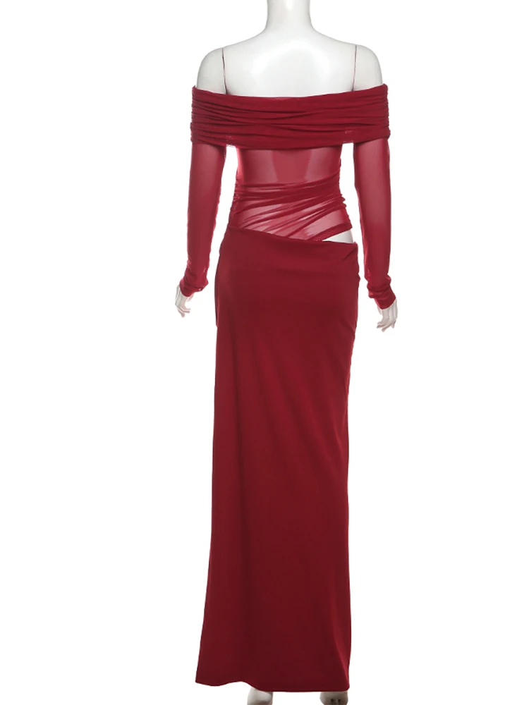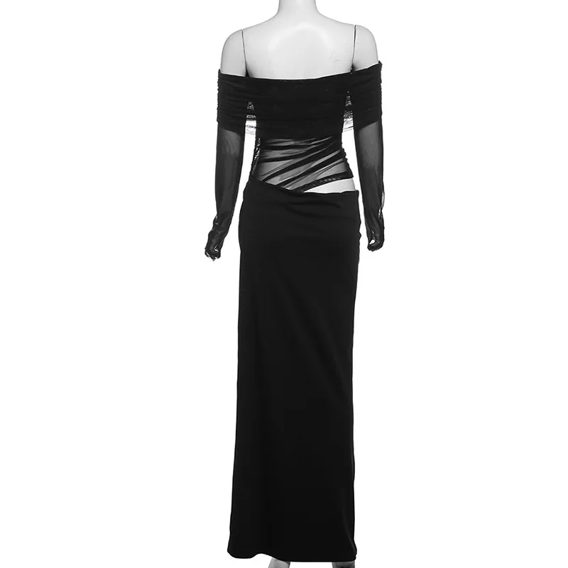 Hnewly Weird Puss Slash Neck Dress Women Chic Elegant Sexy Patchwork Mesh Ruched Hollow Birthday Party Clubwear Vacation Vestidos