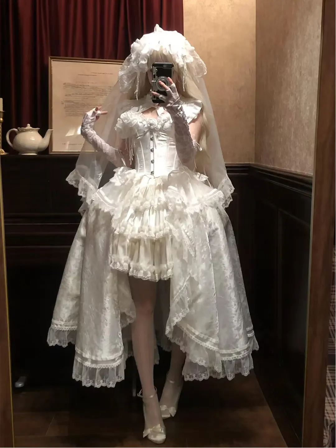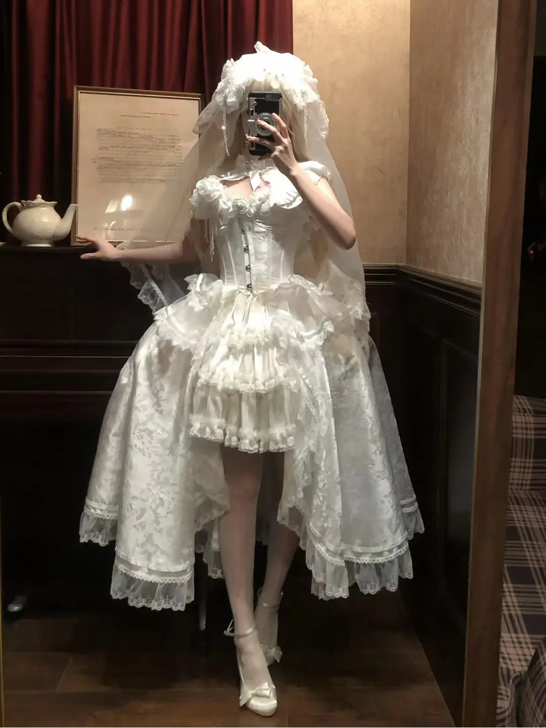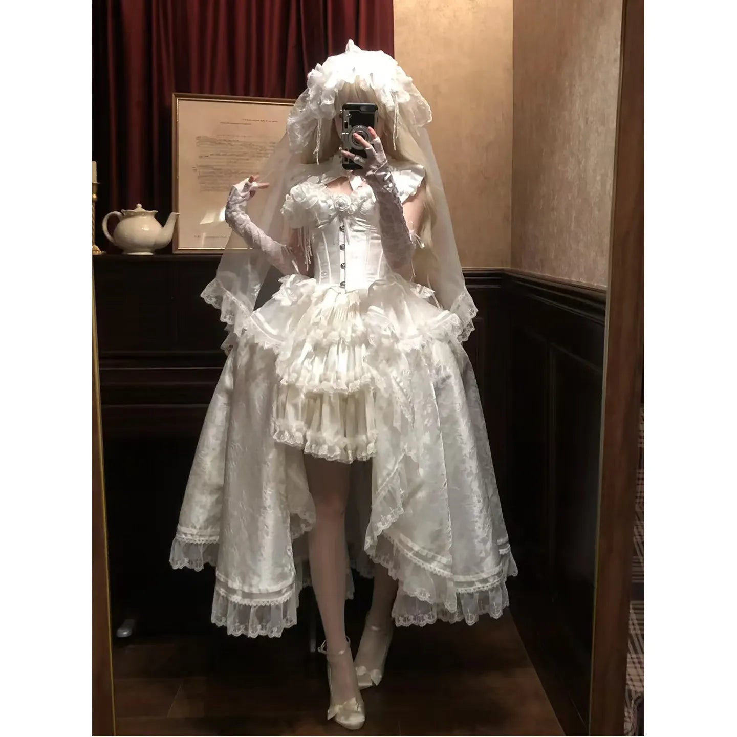 Hnewly White Gothic Lolita Cos Dresses for Women Slim Fit Elegant Vintage Irregular Dress Female Sweet Cool Evening Dresses Vestidos