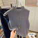 Hnewly White Knitted Camisole Sleeveless Vest For Women Spring Summer Half High Neck Short Basic Bottom Top Korean Version Trendy Tee