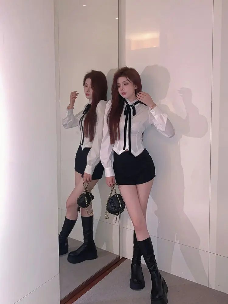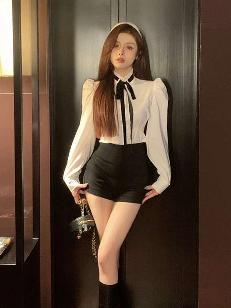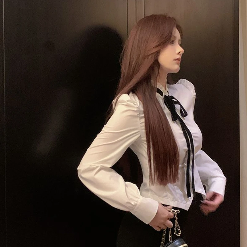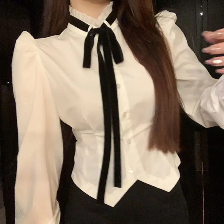 Hnewly White Shirts Women Lolita Style JK Student Pure Spring New Arrival Office Lady Slim Crop Hotsweet Trendy Long Sleeve Chic Design
