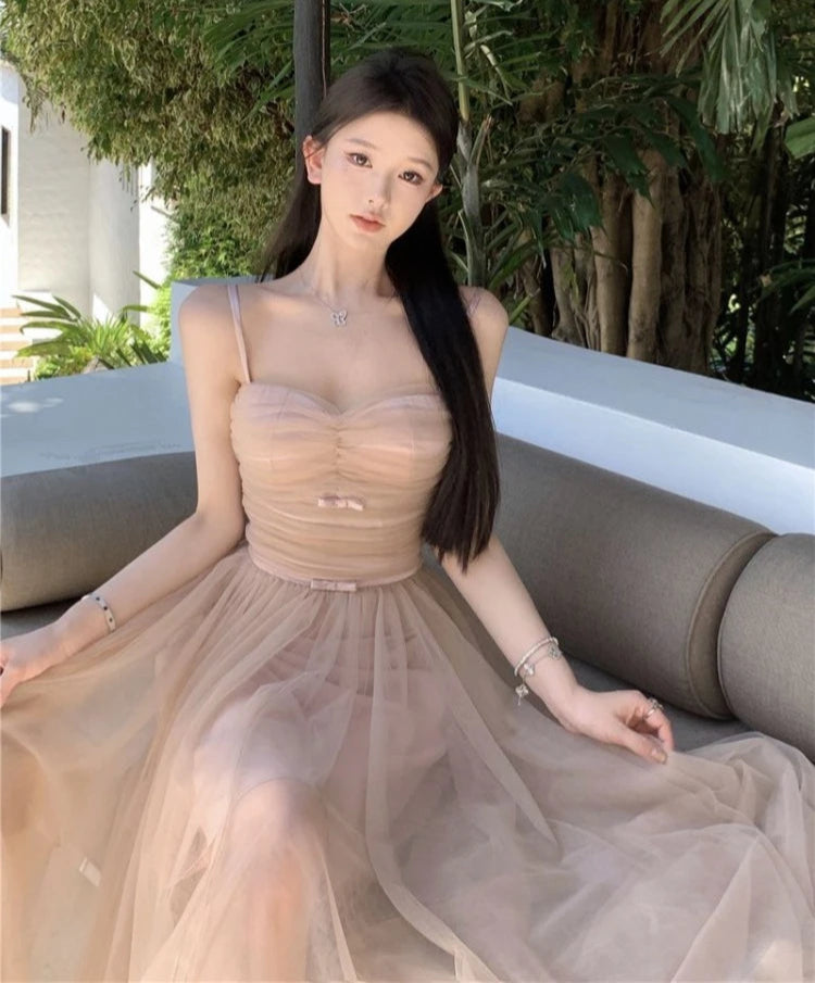 Hnewly Woman Dress Bow Sleeveless Slash Neck Mesh Patchwork Princess Sweet Elegant Summer Fashion Party Dresses Female