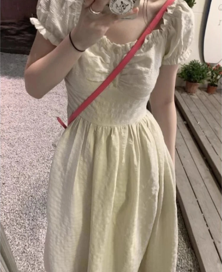 Hnewly Woman Dress Puff Short Sleeve Square Collar Ruffles Patchwork Sweet Elegant Fashion Princess Female Casual Dresses
