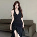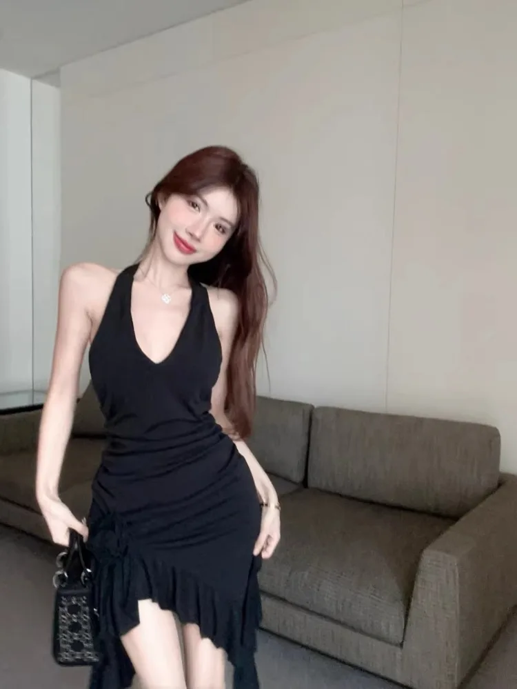 Hnewly Woman Dress Sexy Sleeveless Slim Backless Irregular Ruffles Split Summer Fashion Temperament Party Dresses Female
