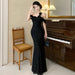 Hnewly Woman Dress Slash Neck Sexy Flowers Off Shoulder Backless Vintage Elegant Temperament Party Mermaid Dress Female Cocktail