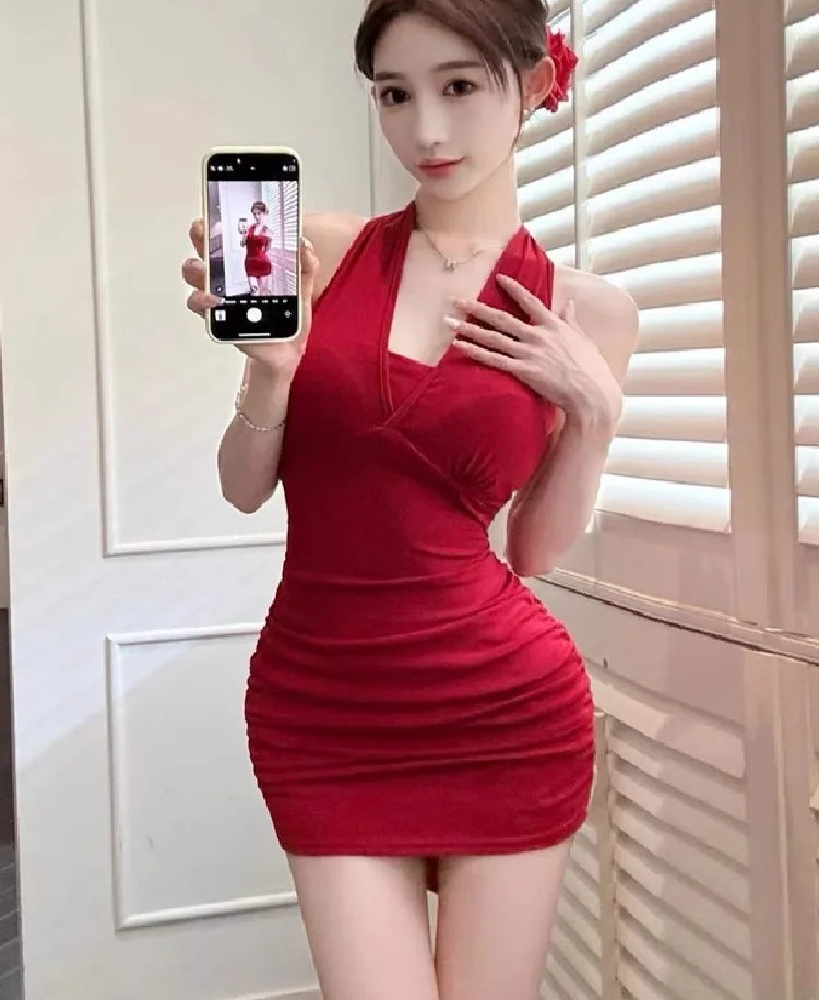 Hnewly Woman Dress Sleeveless Sexy Halter Slim Backless Bow Backless Solid Elegant Summer Fashion Party Mini Dresses Chic