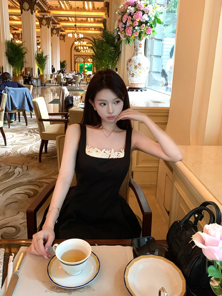 Hnewly Woman Sexy Backless Slim Y2k Mini Dress Sleeveless Fashion Birthday Party Dress Black Vintage One Piece Dress Korean Style