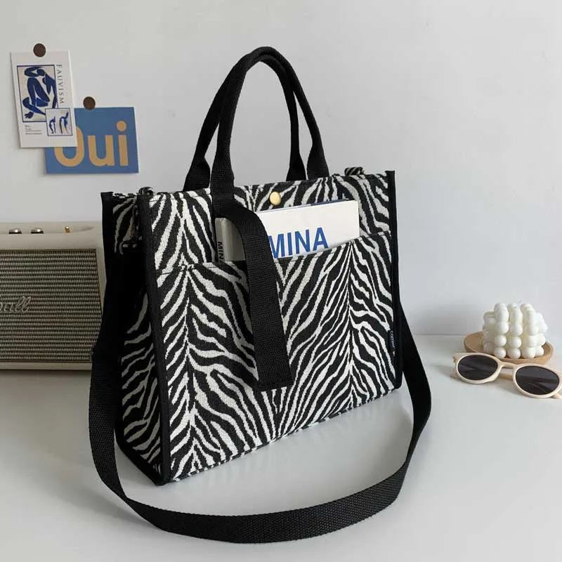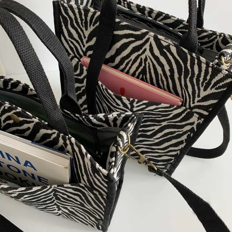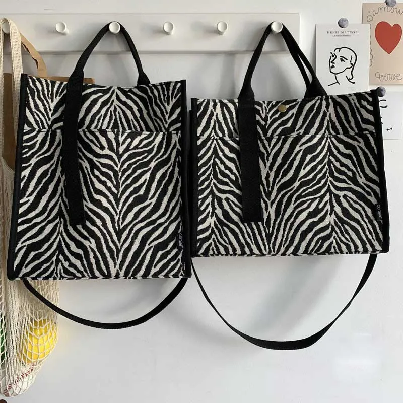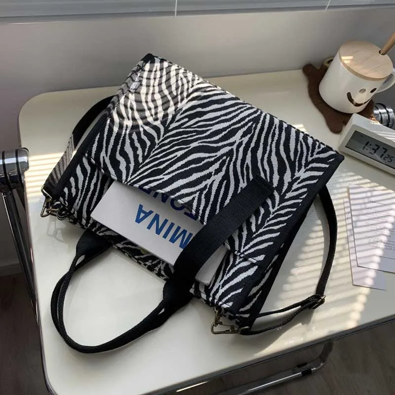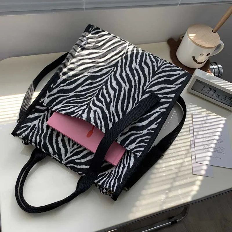 Hnewly Woman's Handbag New Trend Large Capacity Zebra Striped Adjustable Shoulder Strap Bag Canvas Tote Fashion Shopping Bags