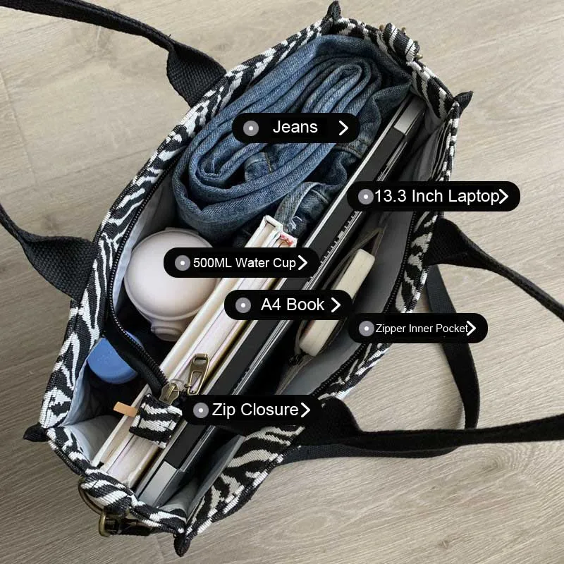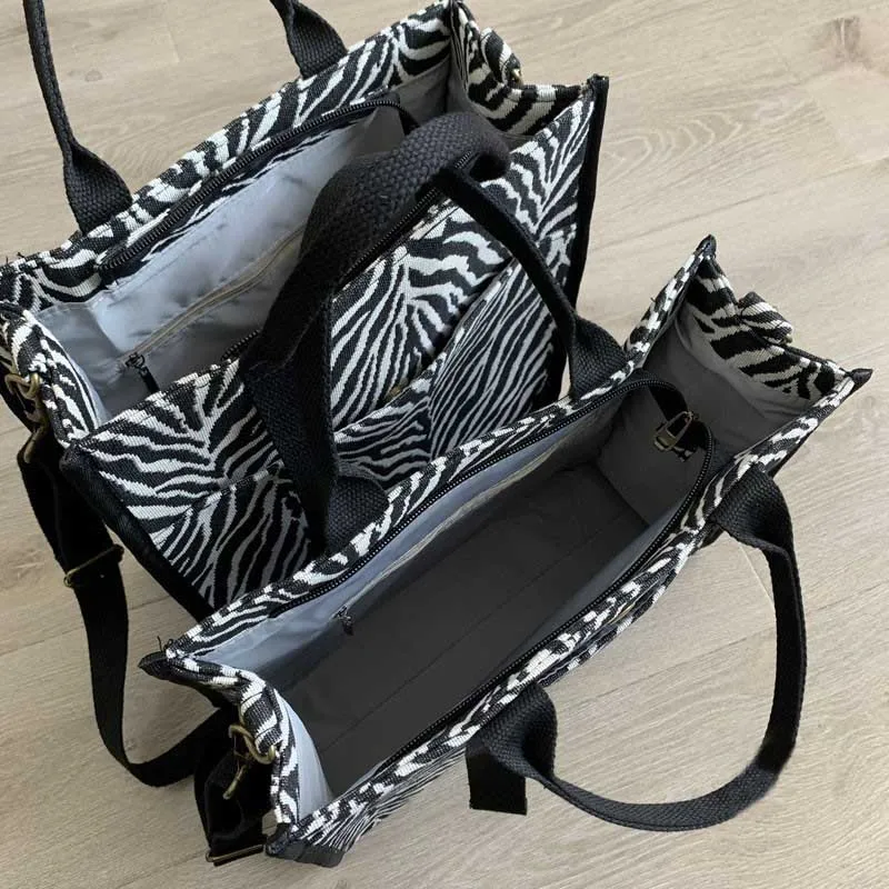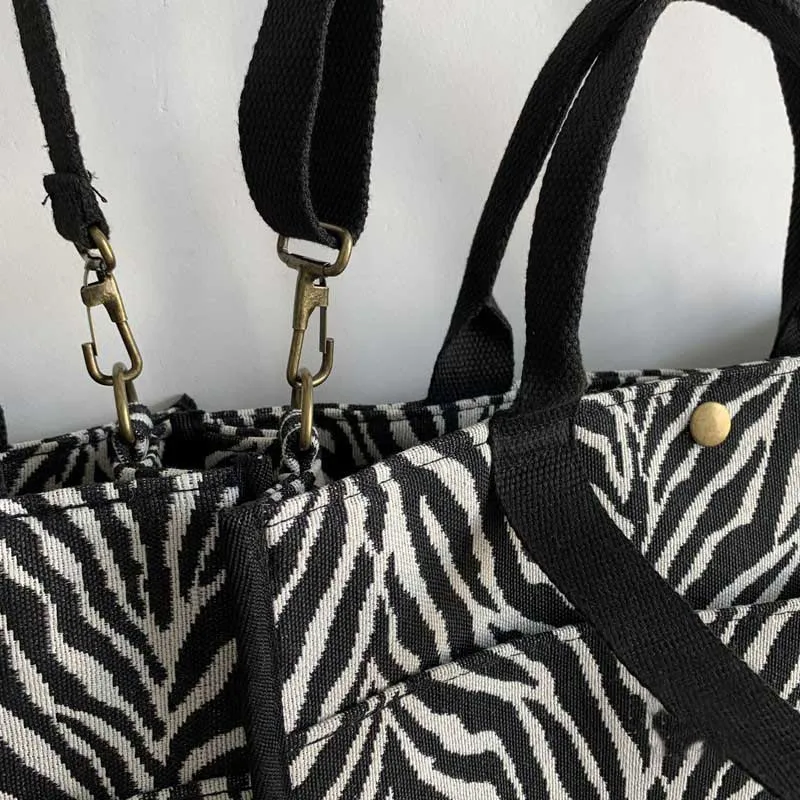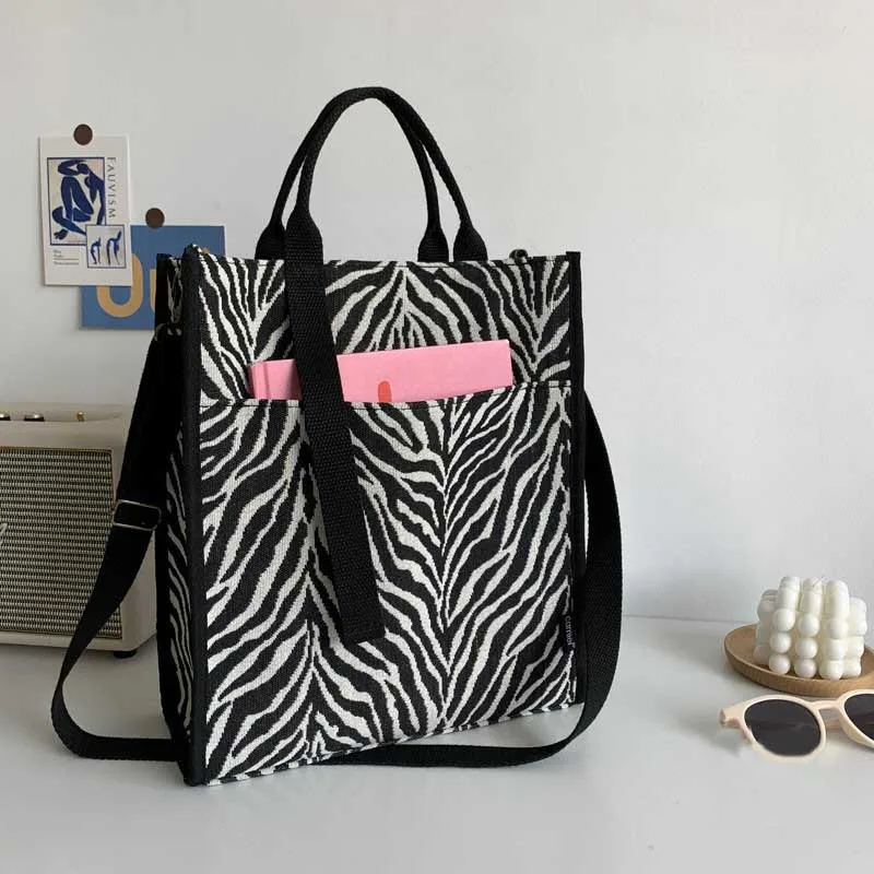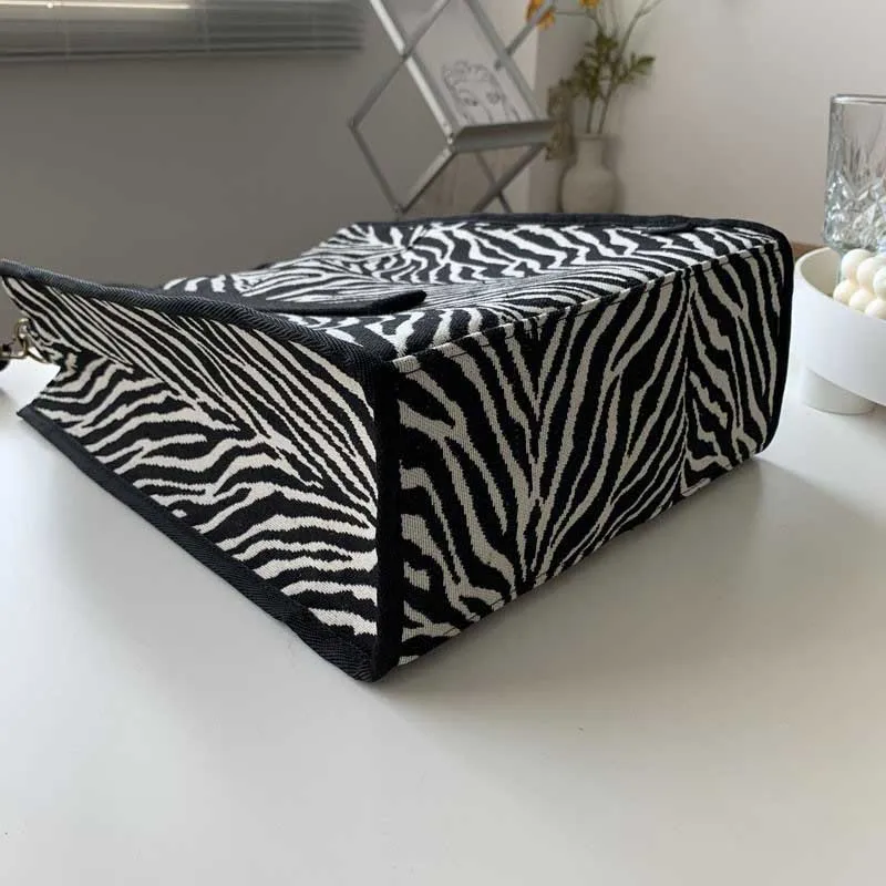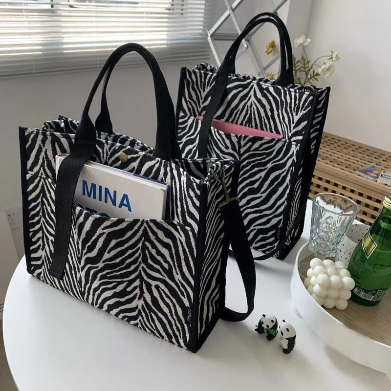 Hnewly Woman's Handbag New Trend Large Capacity Zebra Striped Adjustable Shoulder Strap Bag Canvas Tote Fashion Shopping Bags