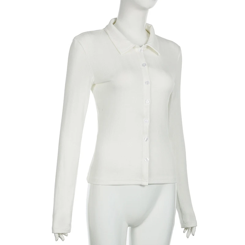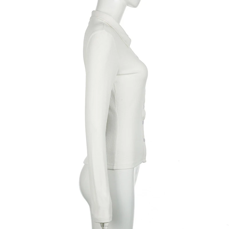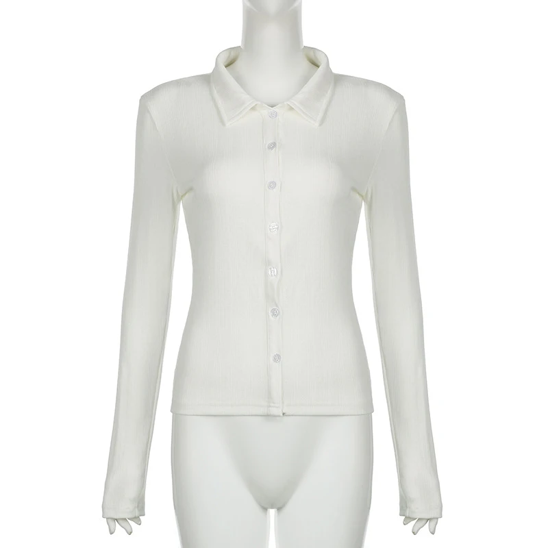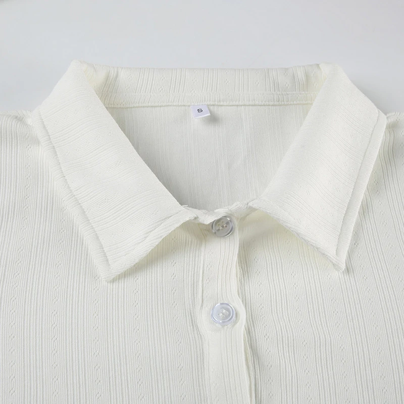 Hnewly Women Autumn Spring Lightweight Knitted Cardigan Solid Color Eyelet Long Sleeve Button Down Lapel Slim Fit Tops Y2K Streetwear