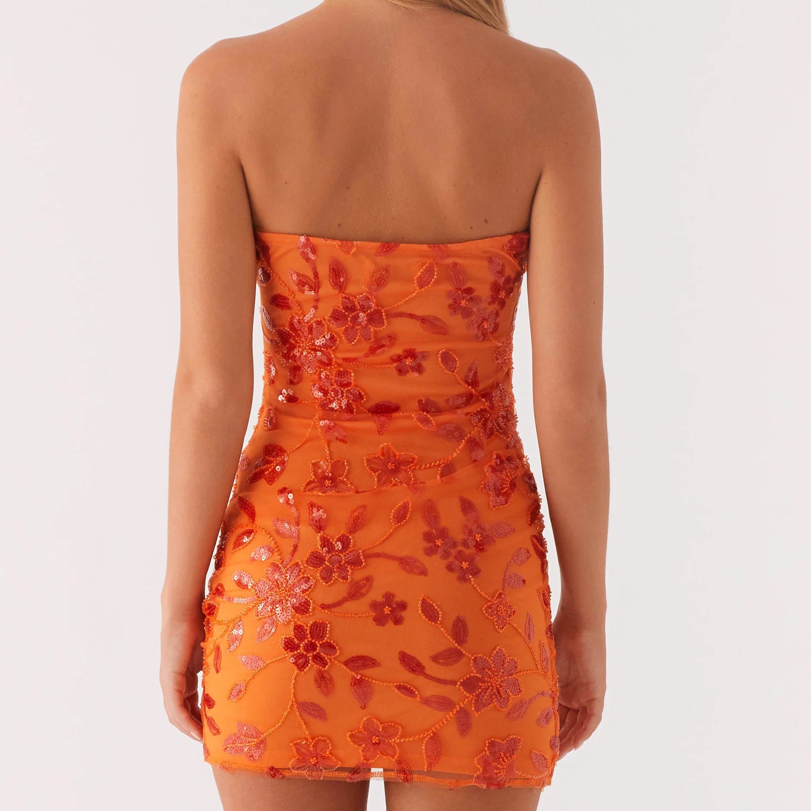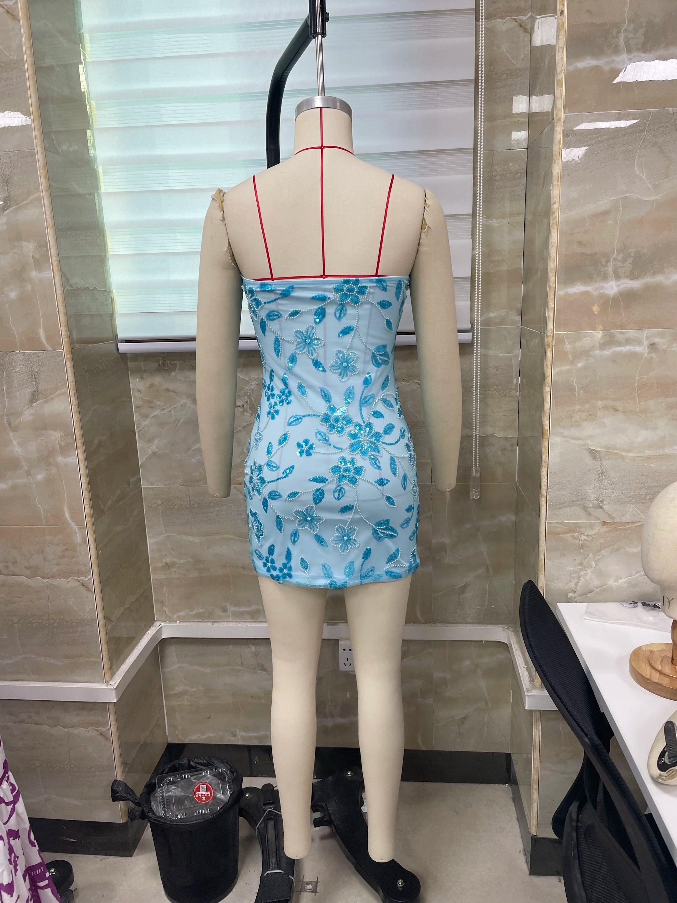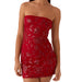 Hnewly Women Boho Sexy y2k Coquette Beaded Floral Tube Dress Slim Sparkly Sequins Off Shoulder Sleeveless Open Back Mini Bodycon Dress