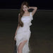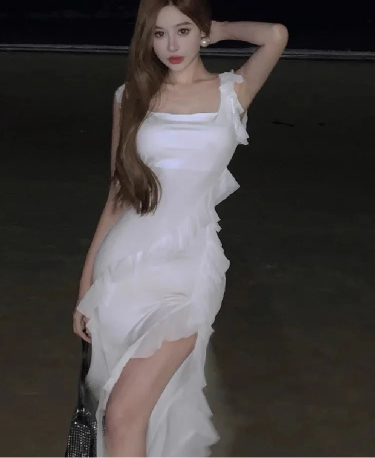 Hnewly Women Dresses Ruffles Patchwork Irregular Split Square Collar Backless Holiday Temperament Party Dress Female Chic