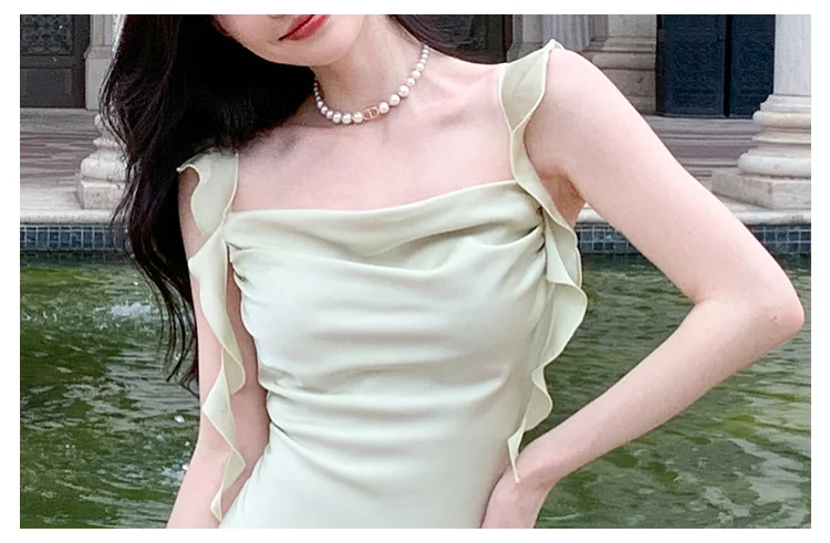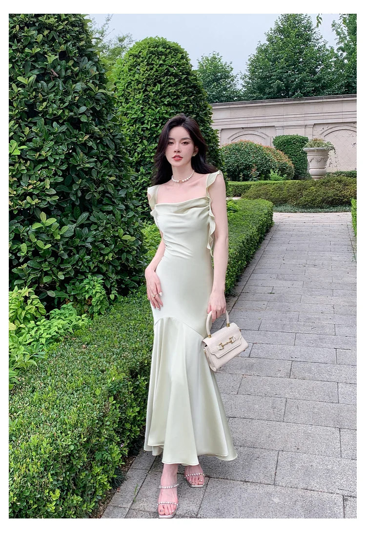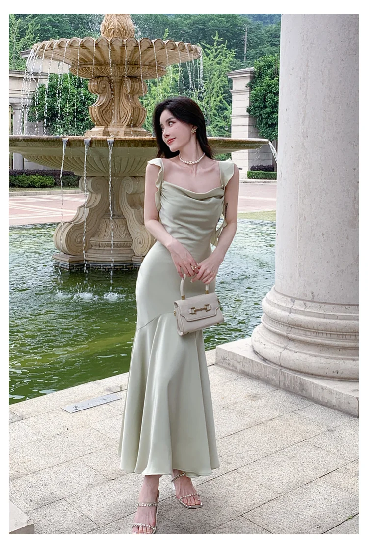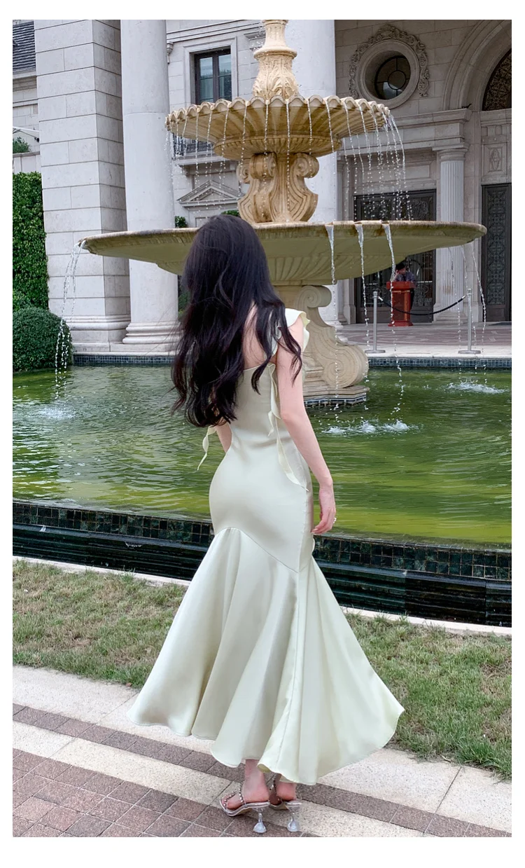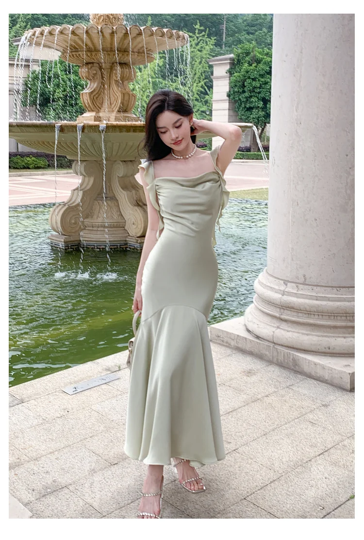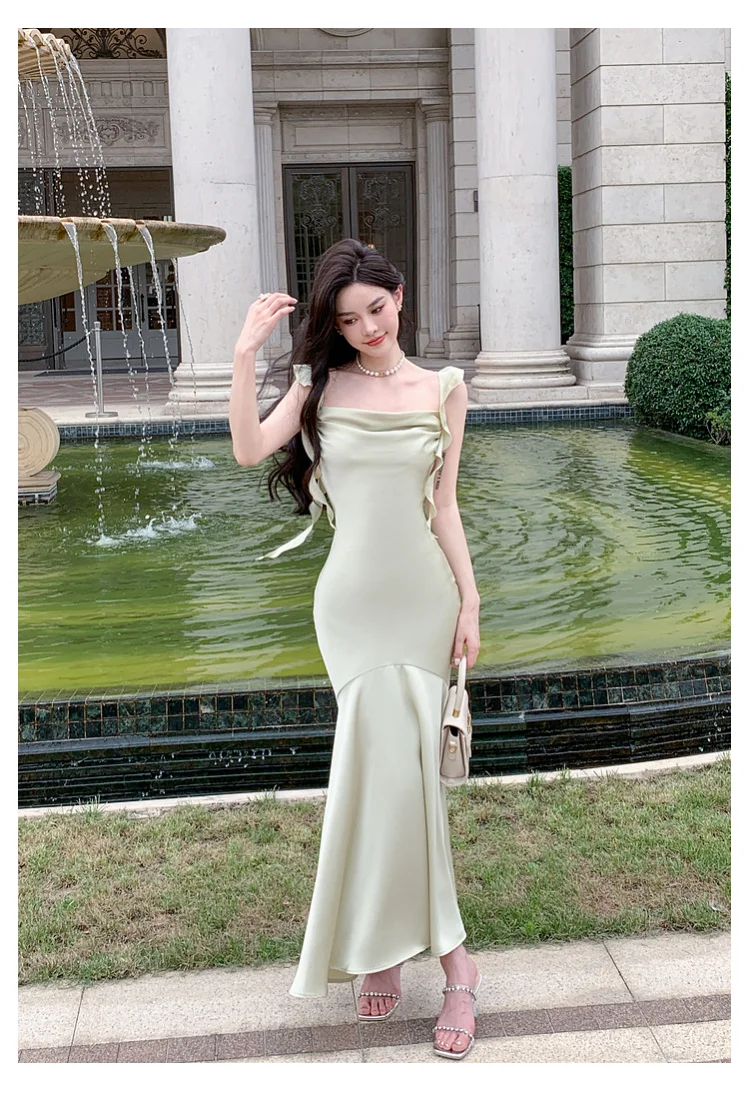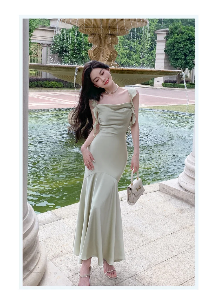 Hnewly Women Elegant Solid Bodycon Mermaid Dresses Summer New Fashion Strap Ruffles beach Vestido Women Wedding Party Clothing